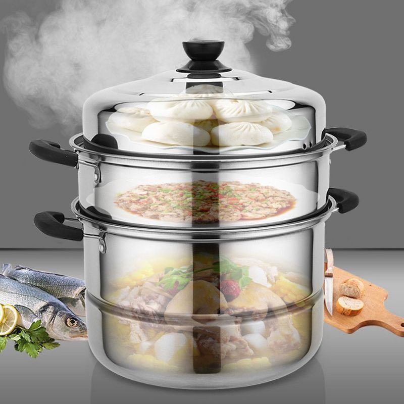 หม้อนึ่ง ซึ้ง สแตนเลส 2 ชั้น ขนาด 30 ซม. ใช้กับเตาแม่เหล็กไฟฟ้าได้ ( หม้อ หม้อ 2 หู กระทะ ซึ้งนึ่ง )#C142