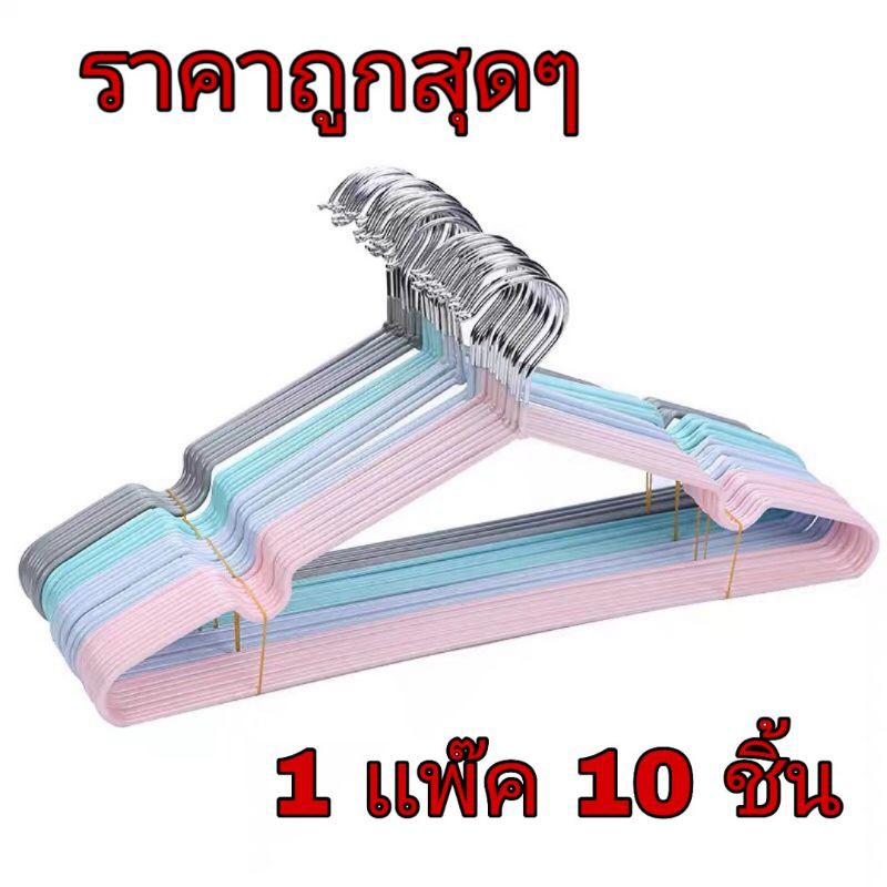 ไม้แขวนเสื้อสแตนเลส แพ็ค 10 ชิ้น ไม้แขวนเสื้อซิลิโคน ไม่หักแพ็คอย่างหนา#D004