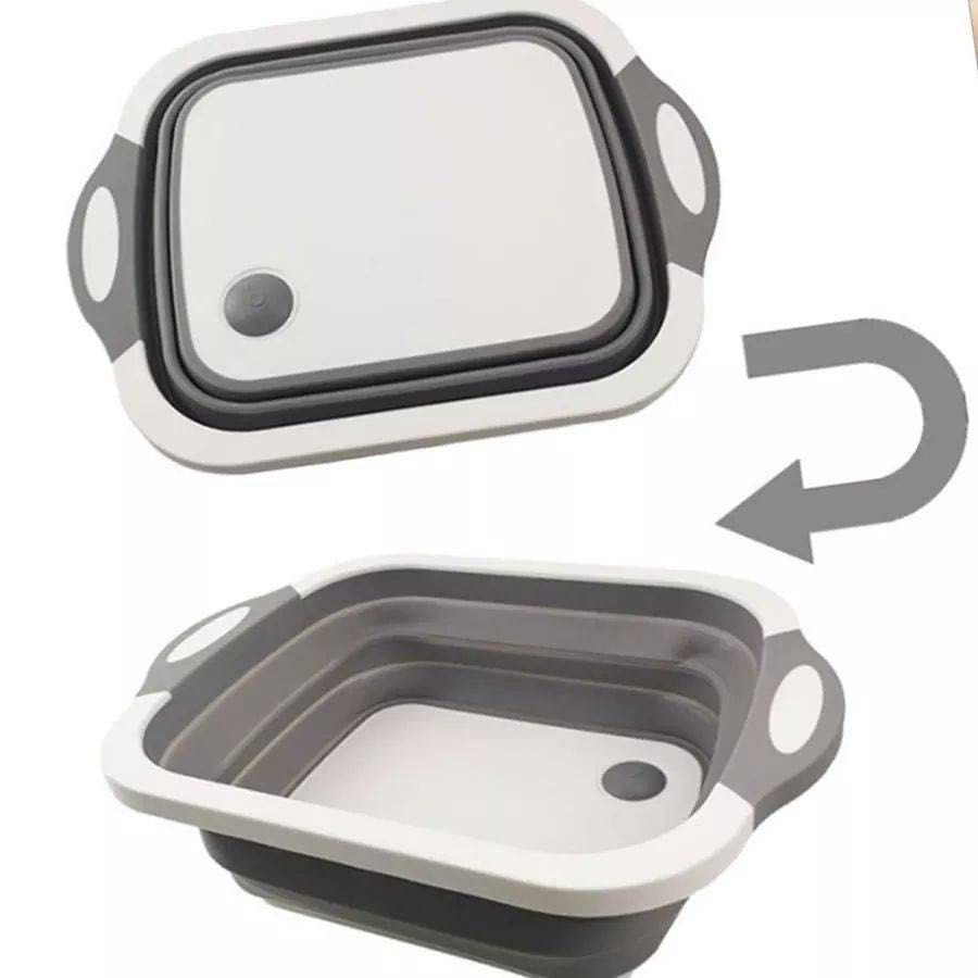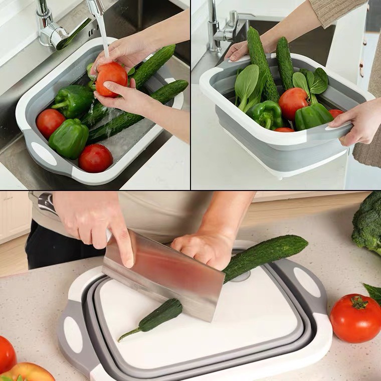🥩เขียง 3 in 1 อุปกรณ์ในครัวเรือน กะละมังพับได้ ซิลิโคนและพลาสติกคุณภาพดี🥩#C042