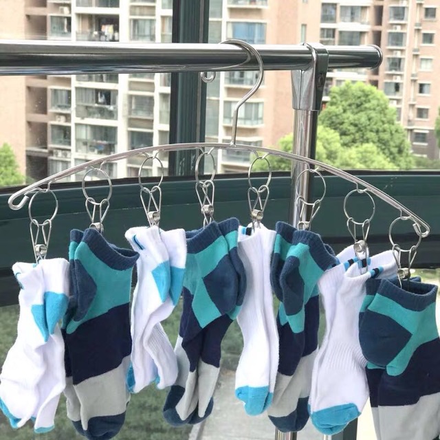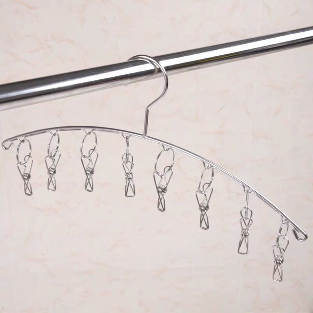 ราวหนีบผ้าสแตนเลส ราวตากผ้า และถุงเท้า แข็งแรง น้ำหนักเบา 8 หนีบ#D001