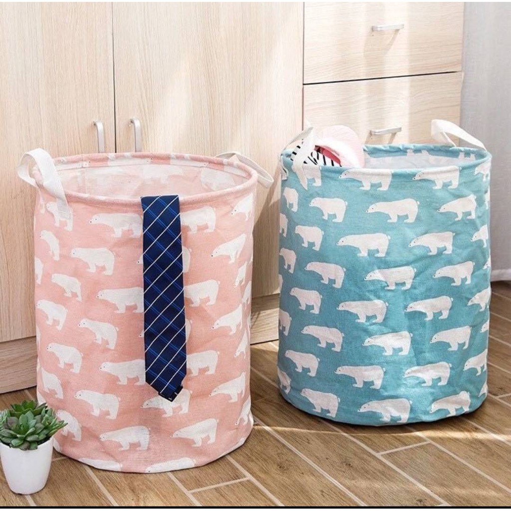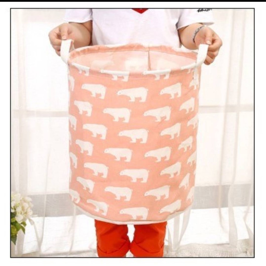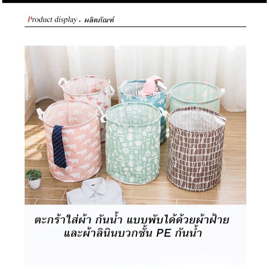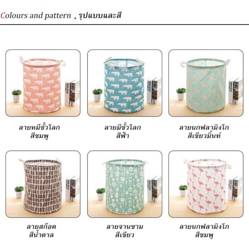 ตระกร้าผ้าเอนกประสงค์ พับเก็บได้ ใส่ผ้าเตรียมซัก เสื้อผ้าใช้แล้ว เครื่องใช้ในบ้านลายน่ารักสีสวย#D041