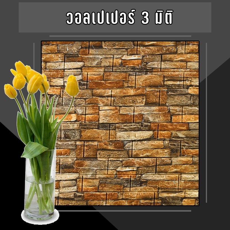 วอลเปเปอร์ วอลเปเปอร์ติดผนัง หนา 4 มม. 70*77cm วอลเปเปอร์ติดผนัง 3d wallpaper ลายอิฐ กันกระแทก มีกาวในตัว 1 แผ่น #A025