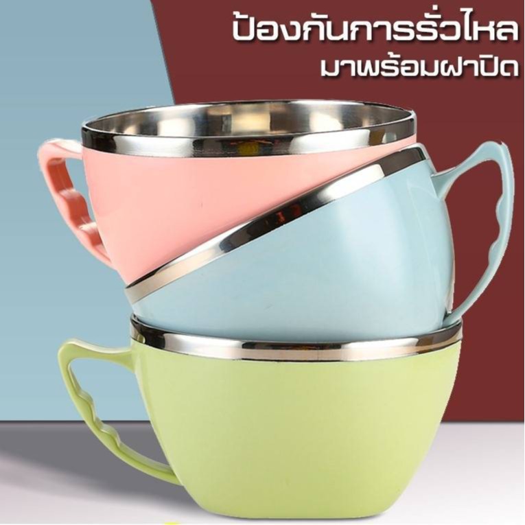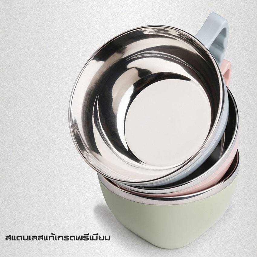 ชามสแตนเลส ชามต้มบะหมี่ ชามมาม่า ถ้วย ถ้วยมาม่า ชามใส่อาหาร ชามมีหูจับกันความร้อน ถ้วยแบบมีหูจับ ทนทาน#C112