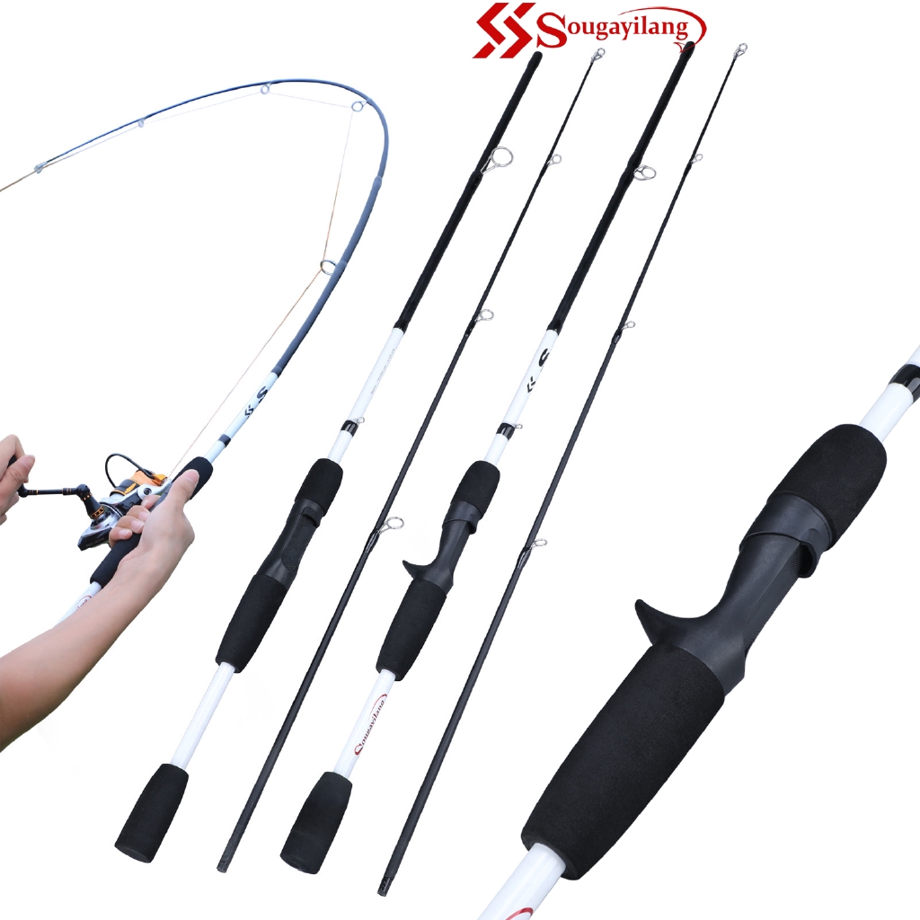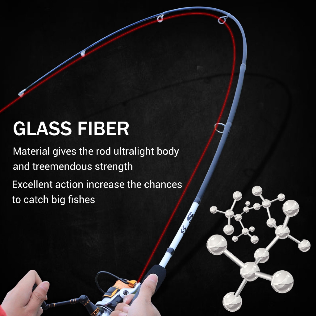 Sougayilang เบ็ดตกปลา แบบมี 2 ส่วน ใยแก้ว ยืดหยุ่นได้ดีมาก สำหรับการตกปลา