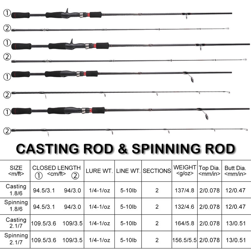 Sougayilang คันเบ็ดตกปลาแคสติ้ง สปินนิ่ง 2 ส่วน คาร์บอนไฟเบอร์ คุณภาพสูง 1.8 เมตร
