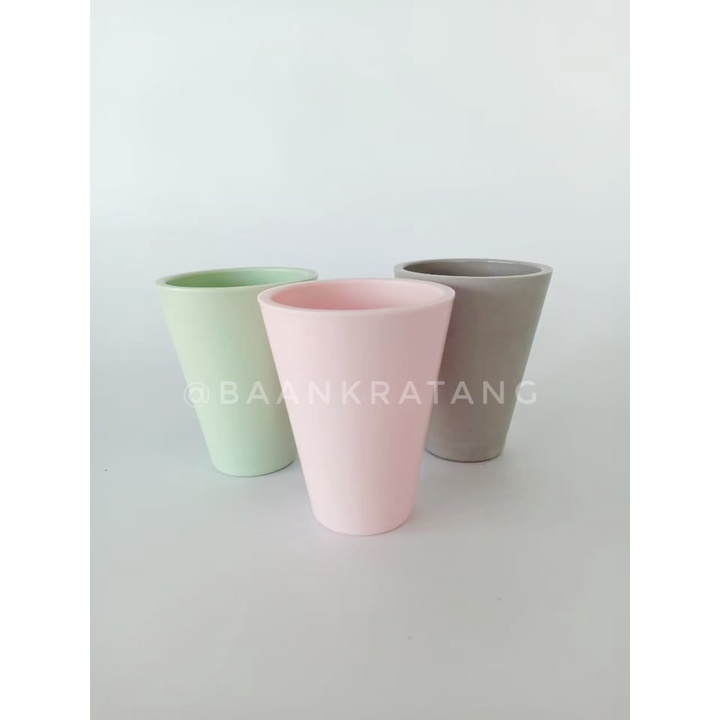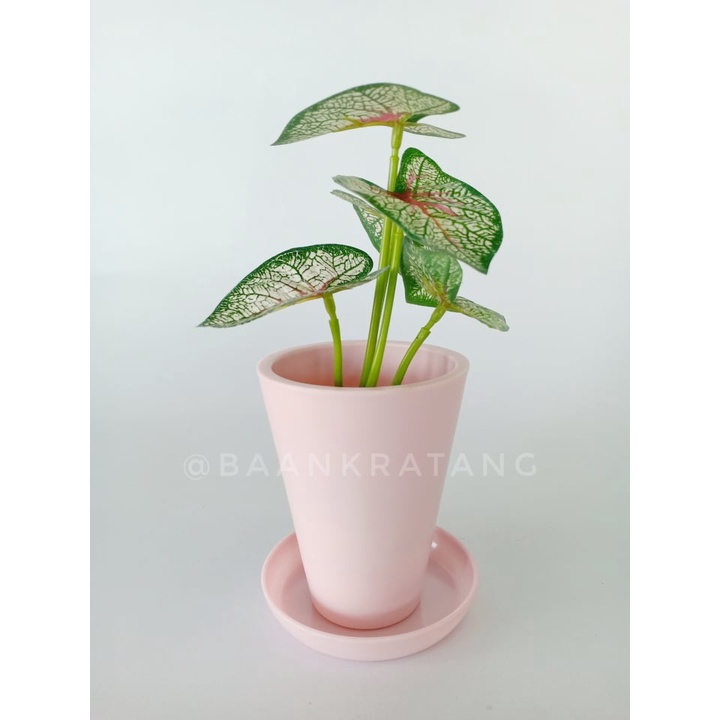 กระถางต้นไม้ กระถางพลาสติกจิ๋ว มีจานรอง สีเขียวชมพูเทา