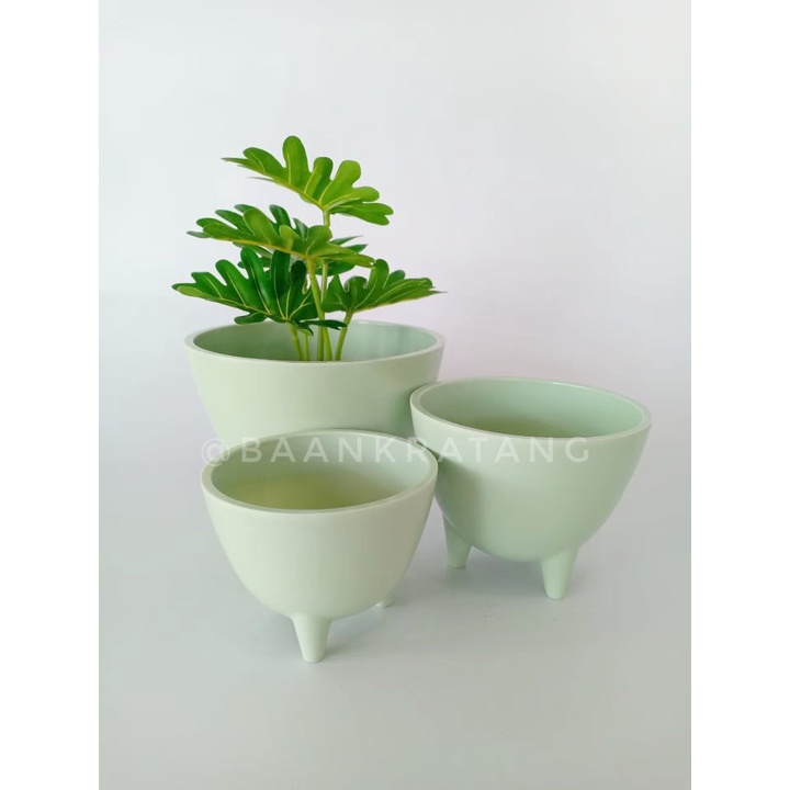 กระถางต้นไม้ กระถางพลาสติก มีขา พร้อมจานรอง ไซส์ S-L สีชมพูฟ้าเขียวพาสเทล และขาวเทาดำ
