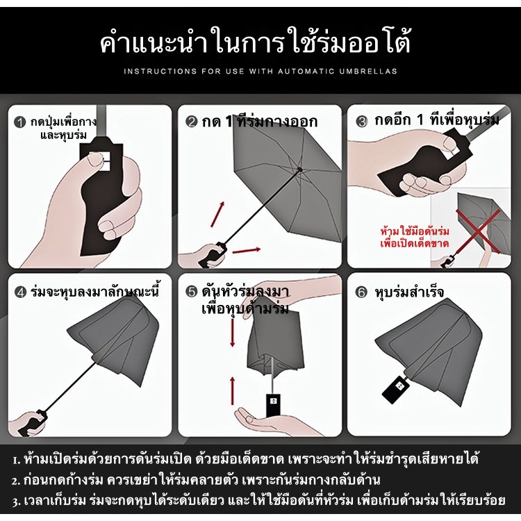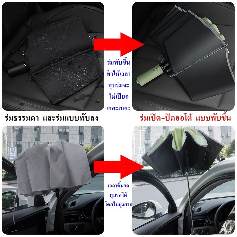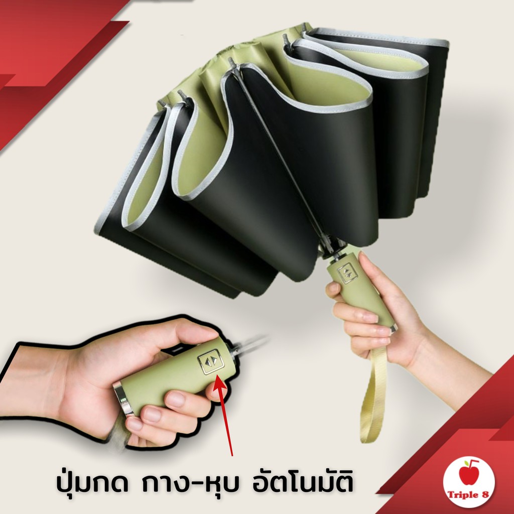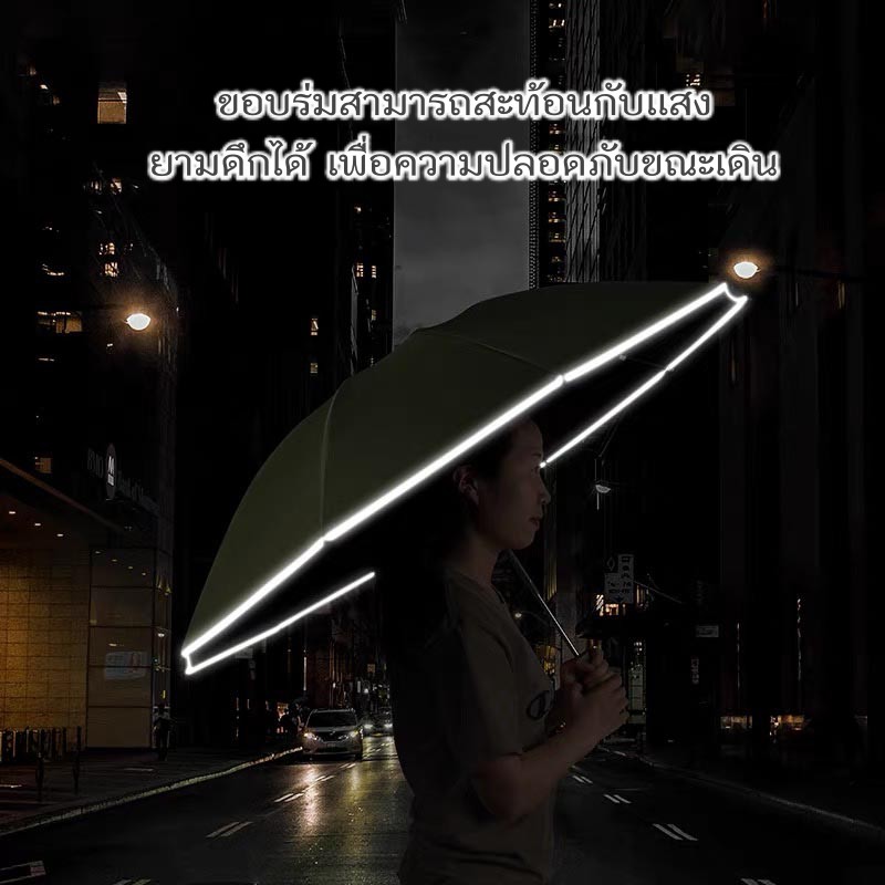 (U6) ร่มพับออโต้ พับเก็บแบบกลับด้าน ขอบสะท้อนกับแสง กันได้ทั้งฝนและแดด UV ได้ดี