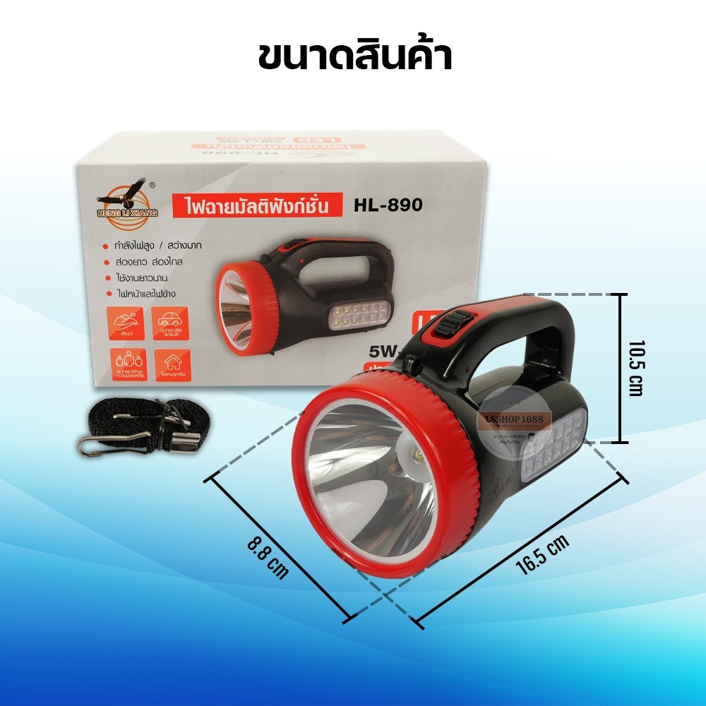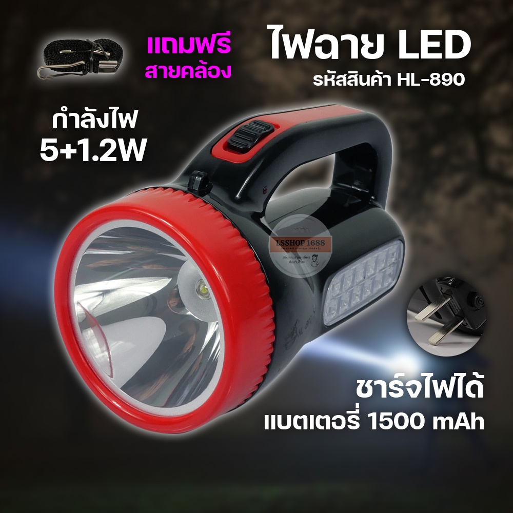 ไฟฉาย LED ไฟเอนกประสงค์ แรงสูง ชนิดชาร์จ เดินป่า ชาร์จไฟ ใช้งานในที่มืด เดินป่า Flashlight HL-890