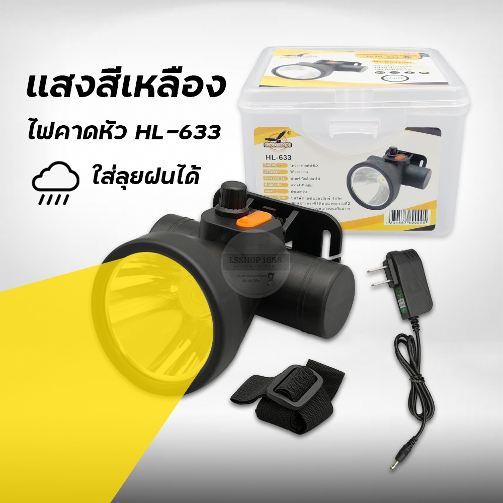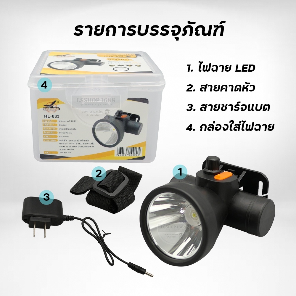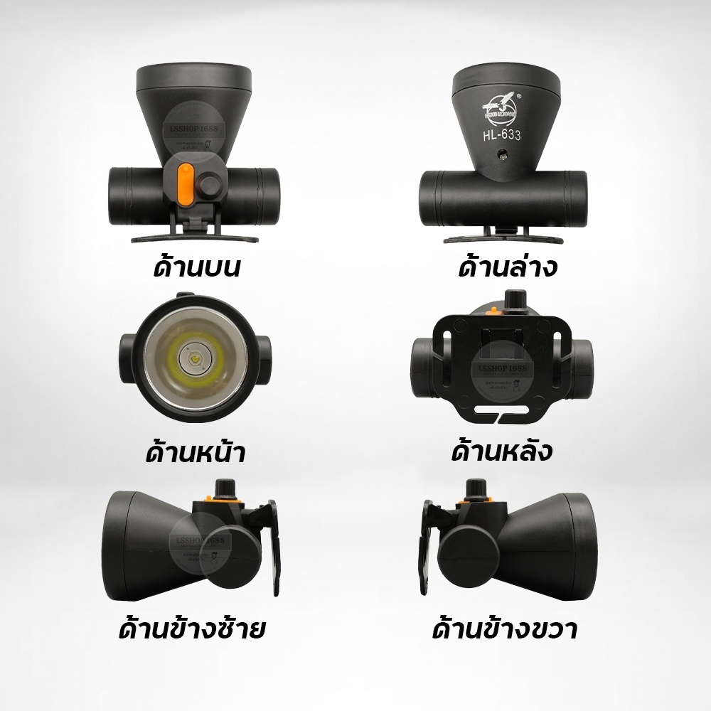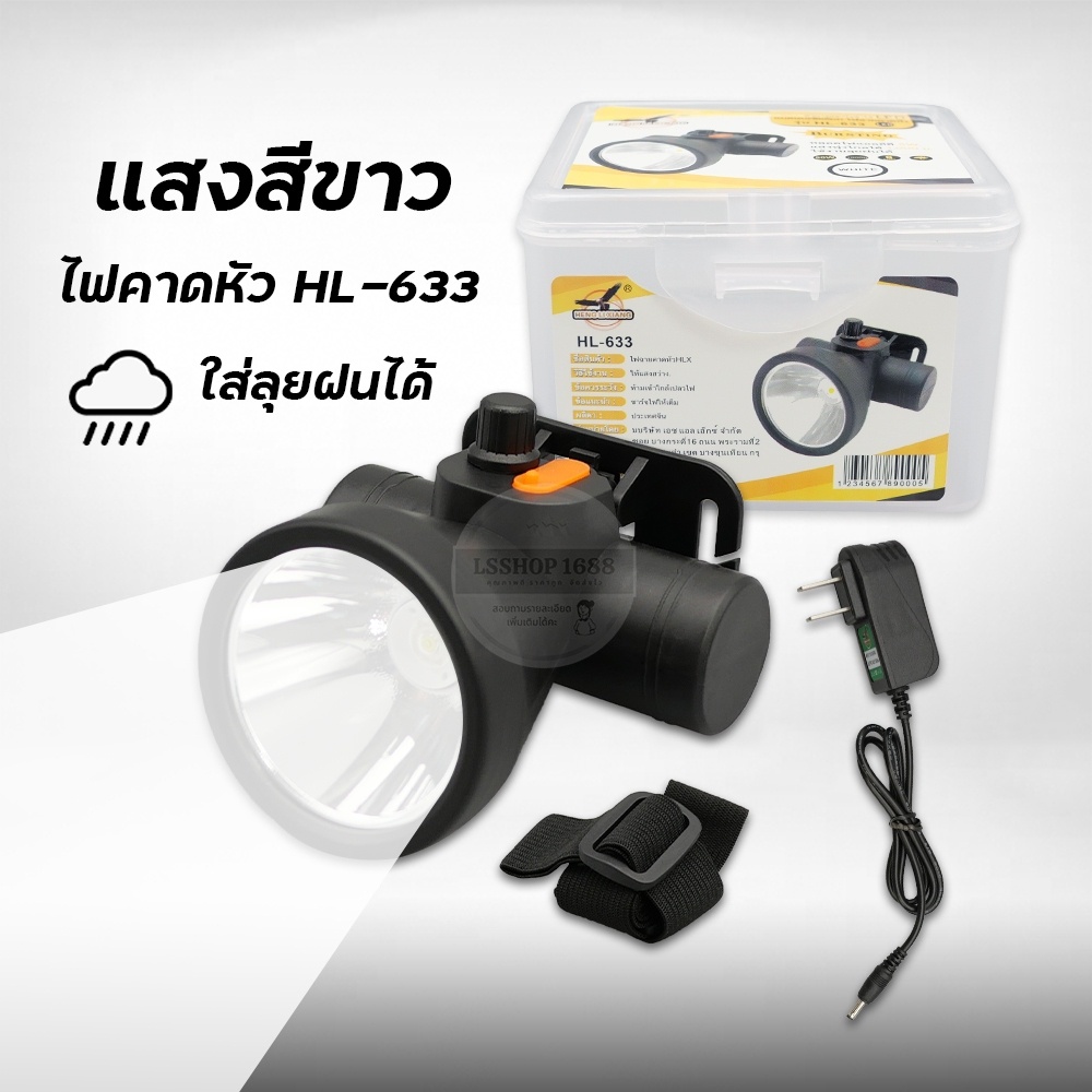 ไฟฉายคาดหัว LED ไฟฉาย ชาร์จได้ หมุนหรี่แสง ลุยฝนได้ กันน้ำ หม้อแบต ส่องกบ กรีดยาง Head Torch HLX ตรานก HL-633