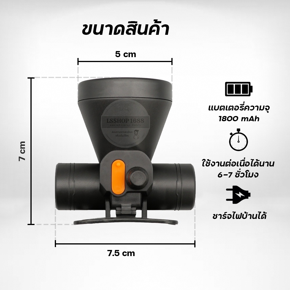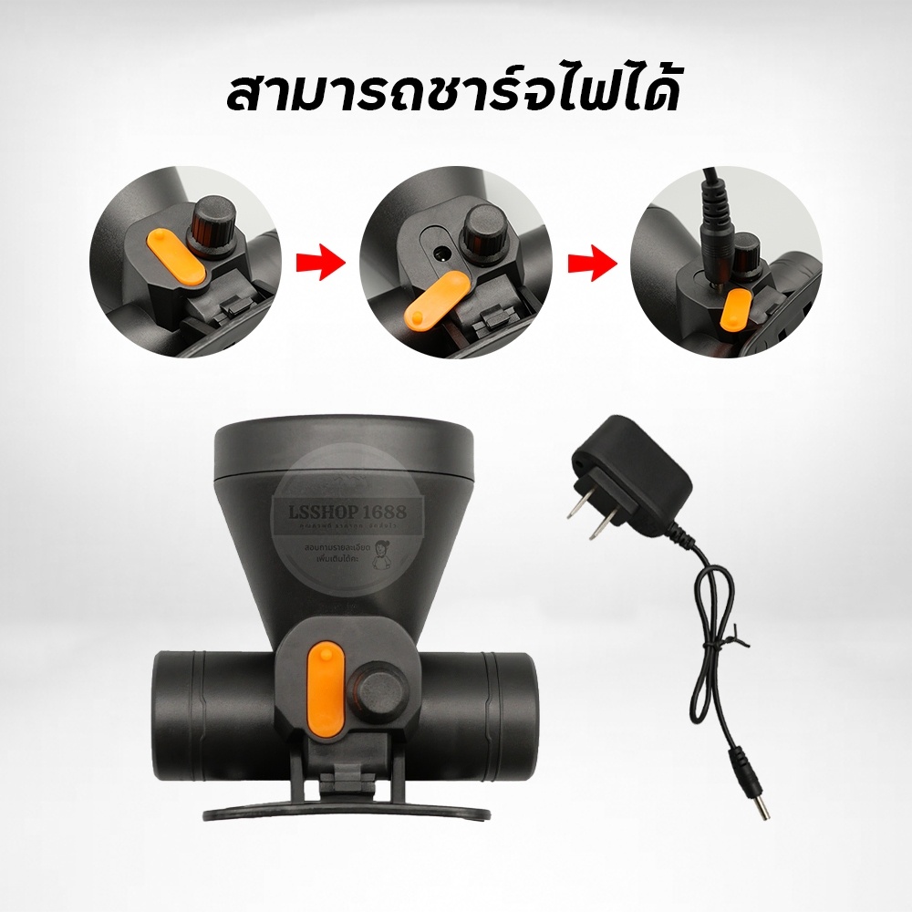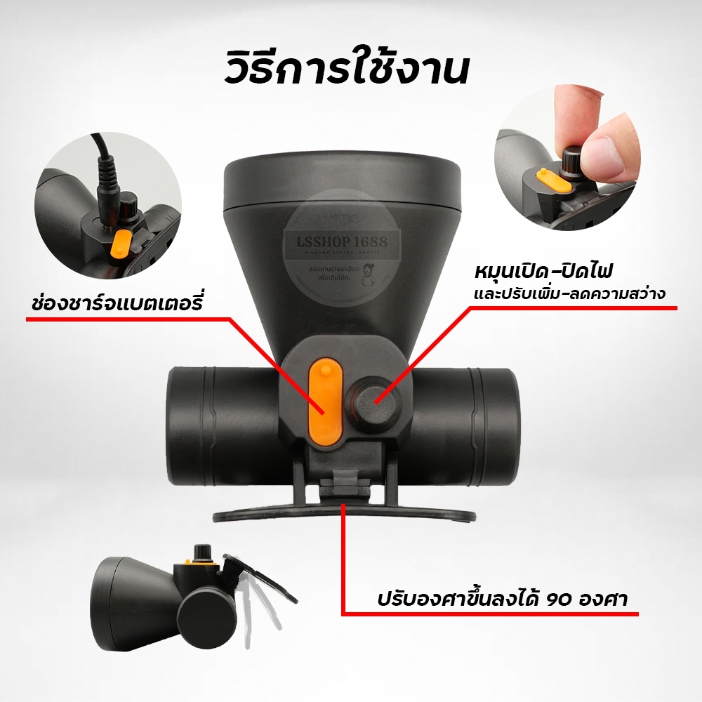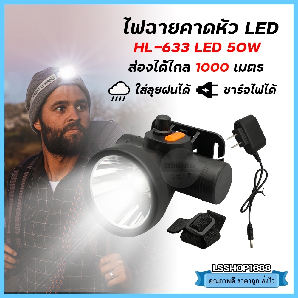 ไฟฉายคาดหัว LED ไฟฉาย ชาร์จได้ หมุนหรี่แสง ลุยฝนได้ กันน้ำ หม้อแบต ส่องกบ กรีดยาง Head Torch HLX ตรานก HL-633
