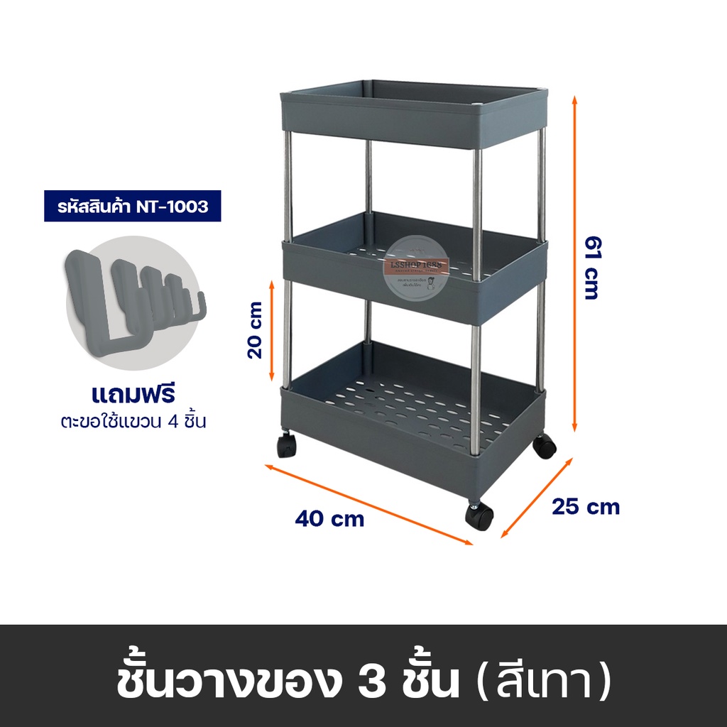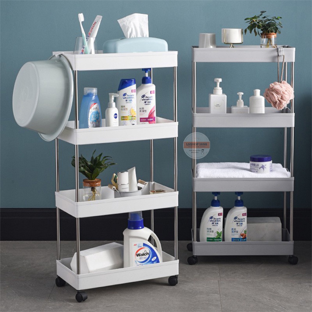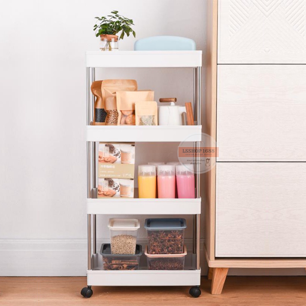 ชั้นวาง ของพลาสติก ชั้นวางอเนกประสงค์ ผัก ผลไม้ เครื่องปรุง น้ำมันพืช เก็บสินค้าแบบมีล้อเลื่อน