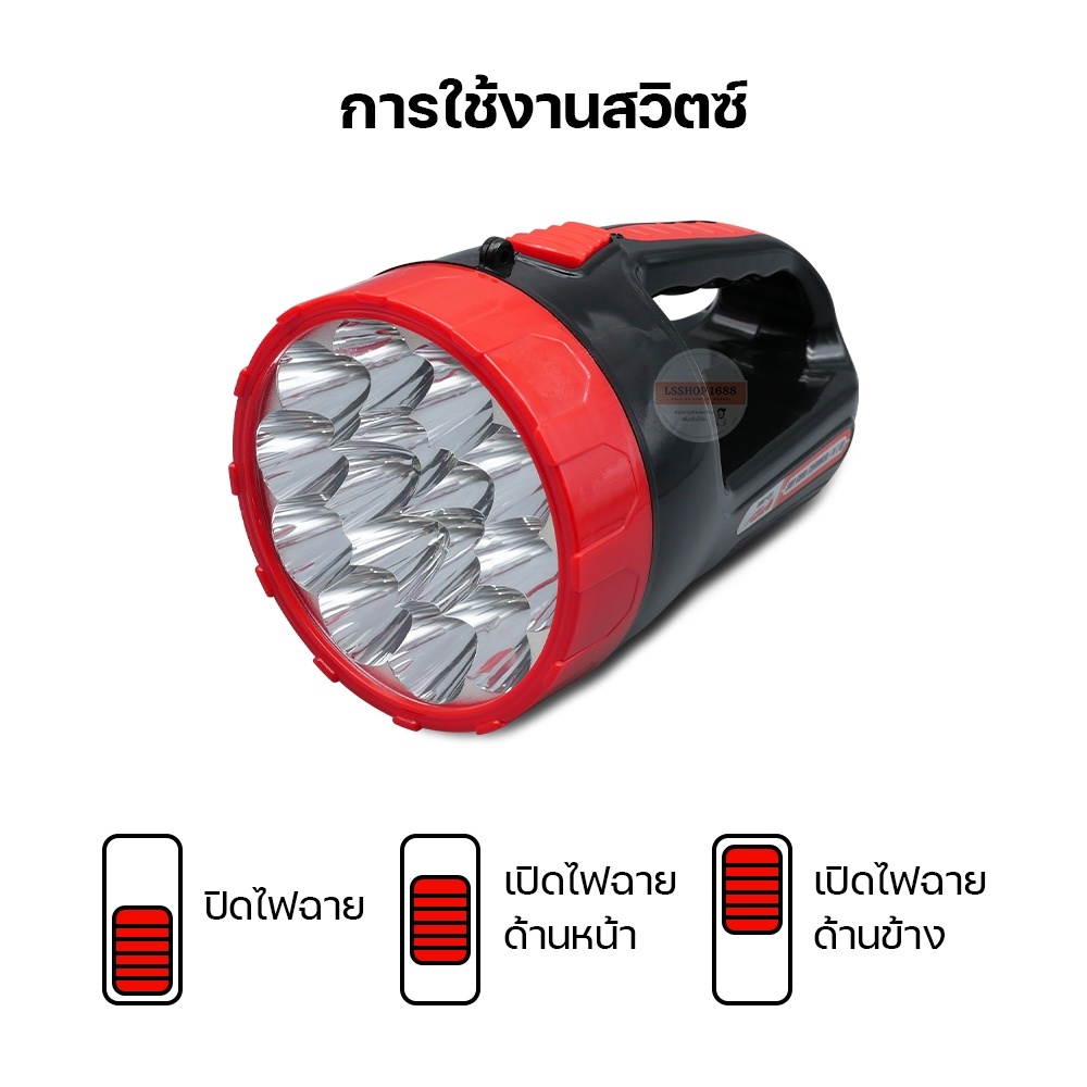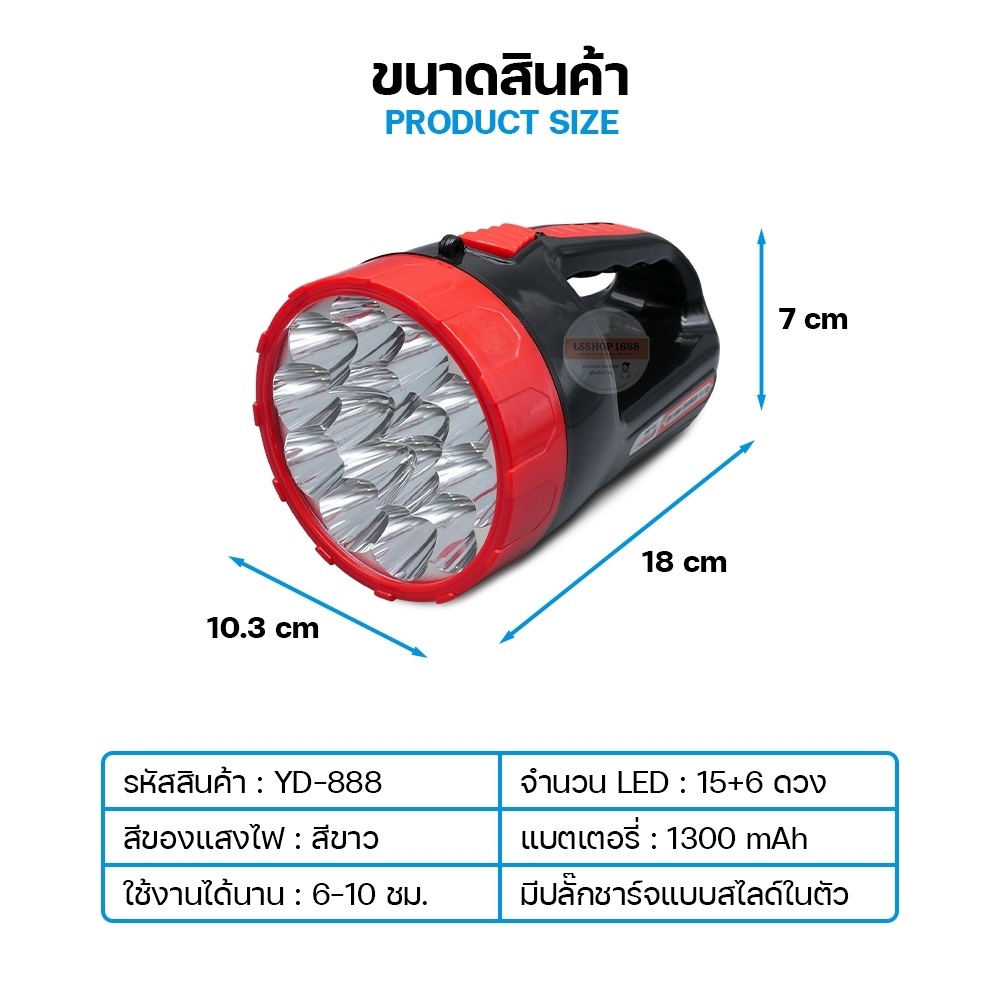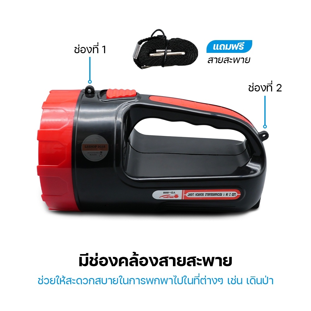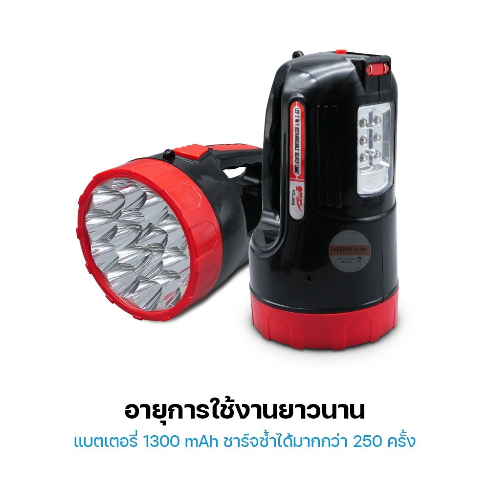 ไฟฉาย LED เอนกประสงค์ รุ่น YD-888 แสงขาว พกพาได้ ชาร์จแบตได้ ปลั๊กชาร์จในตัว ไฟเดินป่า Flashlight