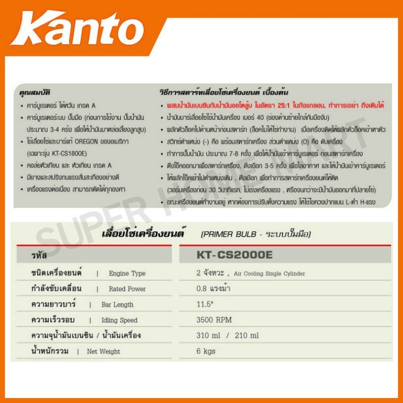 ราคาพิเศษ !!! Kanto เลื่อยโซ่ยนต์ บาร์ 11.5 นิ้ว (แถมฟรีโซ่ 2 เส้น) รุ่น KT-CS2000E (ระบบปั๊มมือ Primer Bulb) เลื่อยยนต์