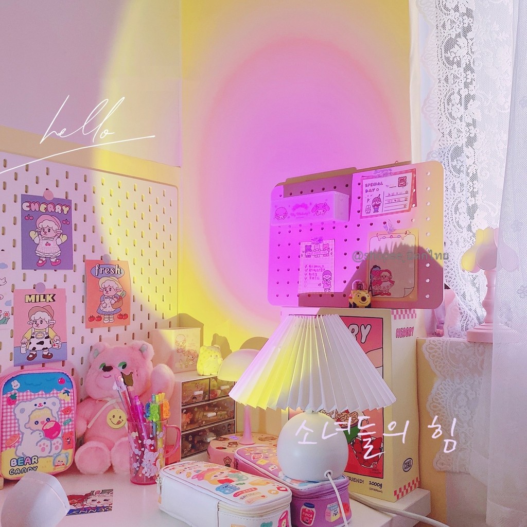 (พร้อมส่ง)ไฟตกแต่ง โคมไฟหัวเตียง โคมไฟ มี14สีเปลี่ยนได้ โคมไฟตกแต่งห้องไฟจำลองสายรุ้งLED Rainbow Sunset projection lamp