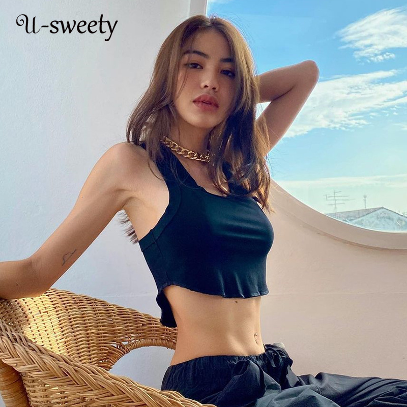 U - Sweety เสื้อกล้าม เอวลอย แขนกุด สีพื้น ทรงสลิมฟิต สำหรับผู้หญิง