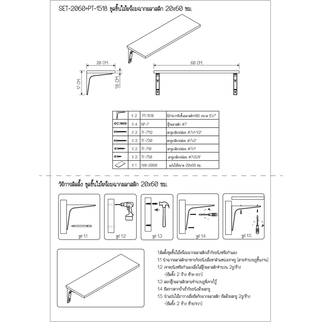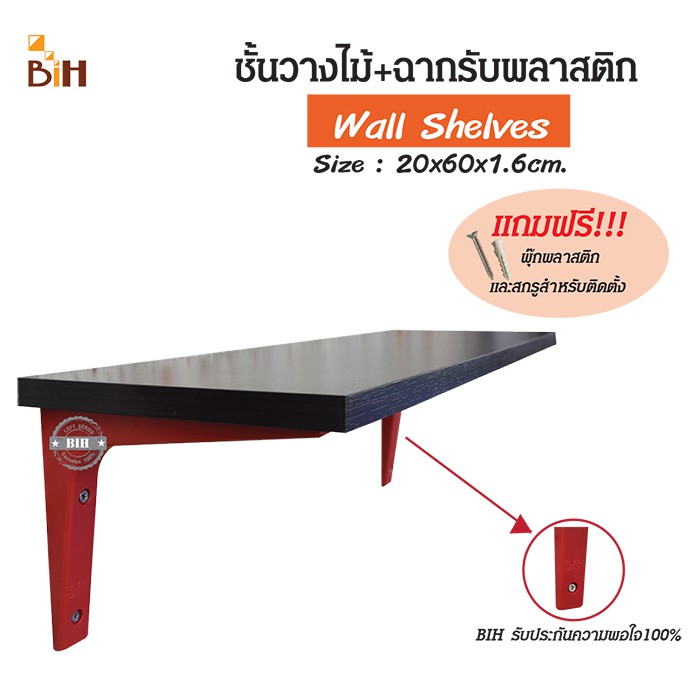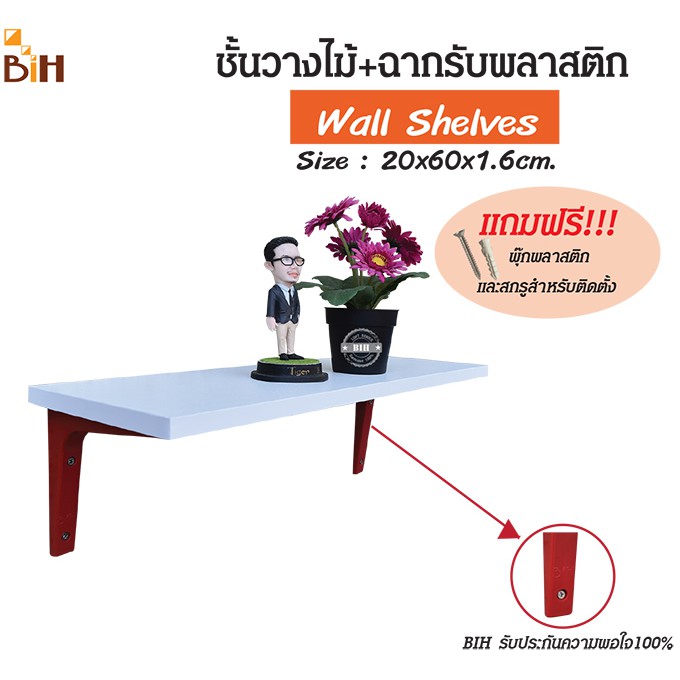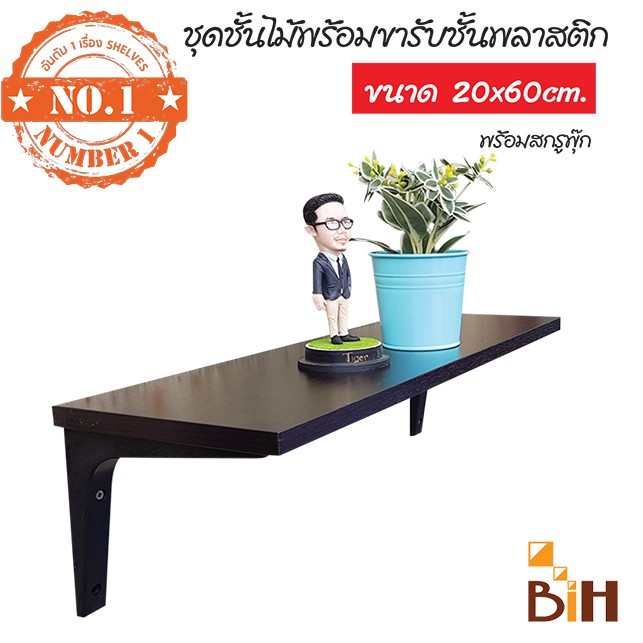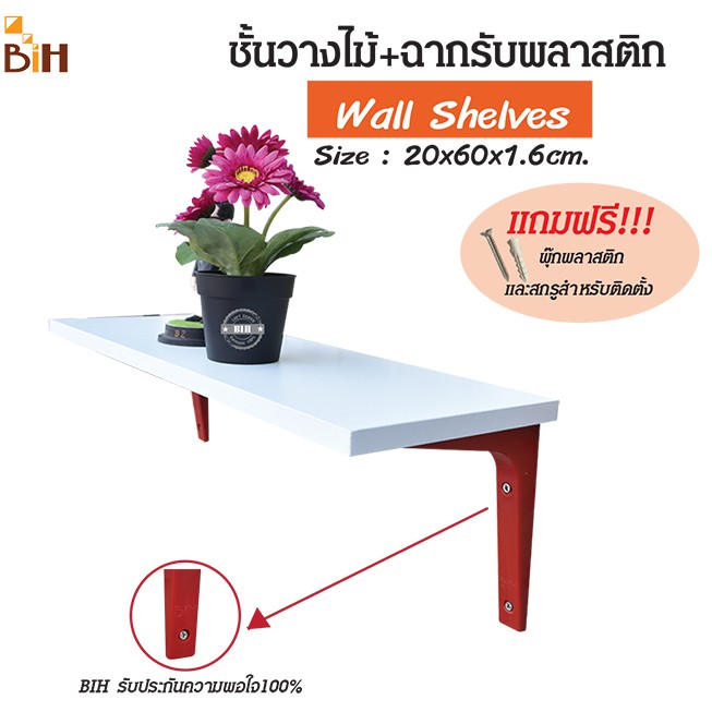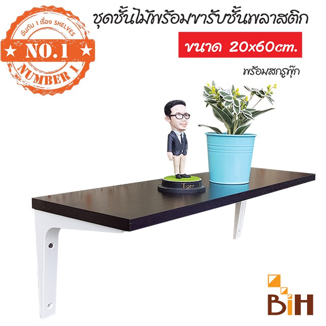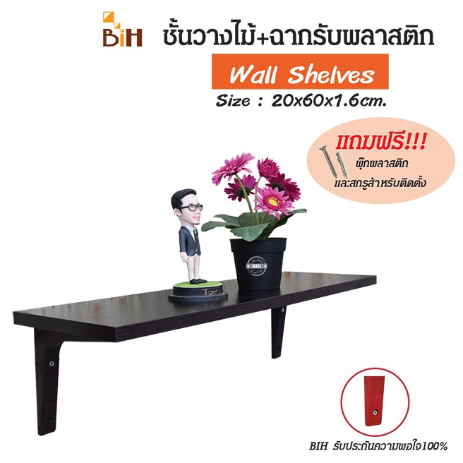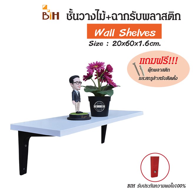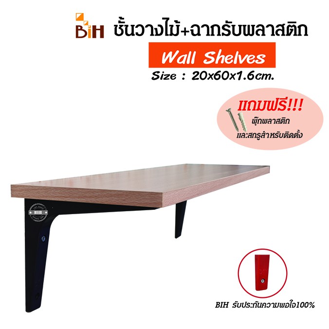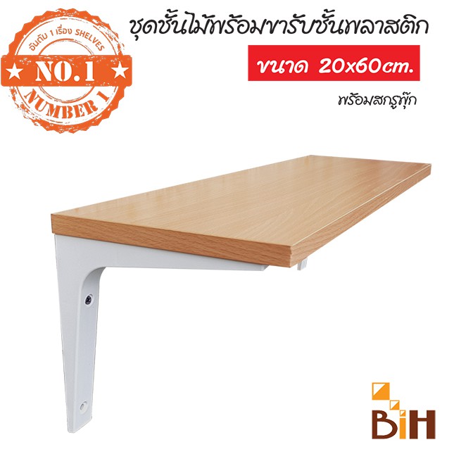ชั้นไม้ติดผนังไม้พาร์ติเคิลผิวเมลามีนขนาด20*60*1.6cm+ฉากรับrพลาสติกABS
