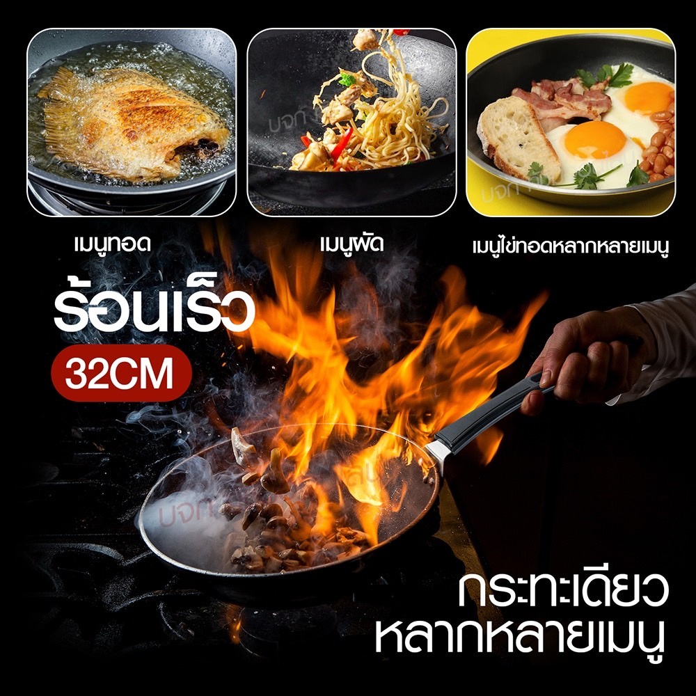 [ลูกค้าใหม่1บาท] กะทะ กระทะเทปล่อน แบบเคลือบ ก้นลึก ขนาด32CM QF-K165 ไม่ติด กระทะ Non stick