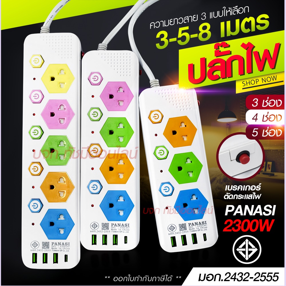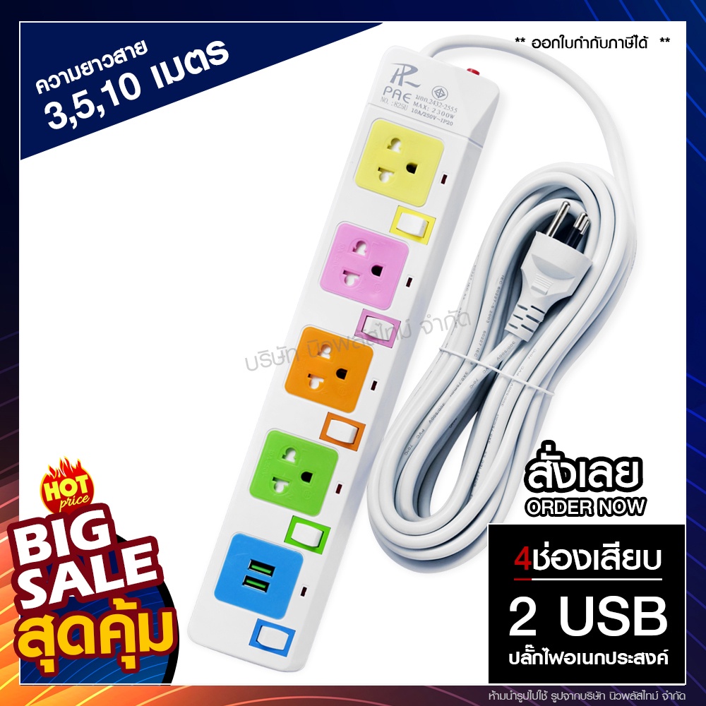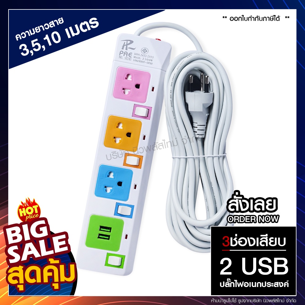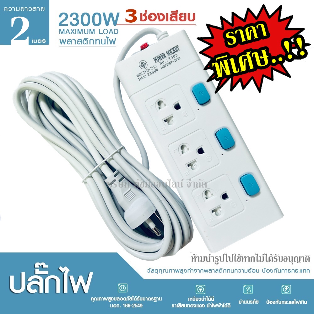 [ใส่โค้ด T4F5MJ2 ลดทันที 20%] พร้อมส่ง! ปลั๊กไฟ (มอก.แท้) 3ช่อง 4ช่อง / 5 เมตร 3เมตร 2เมตร ปลั๊กพ่วง รุ่น T303 / T304