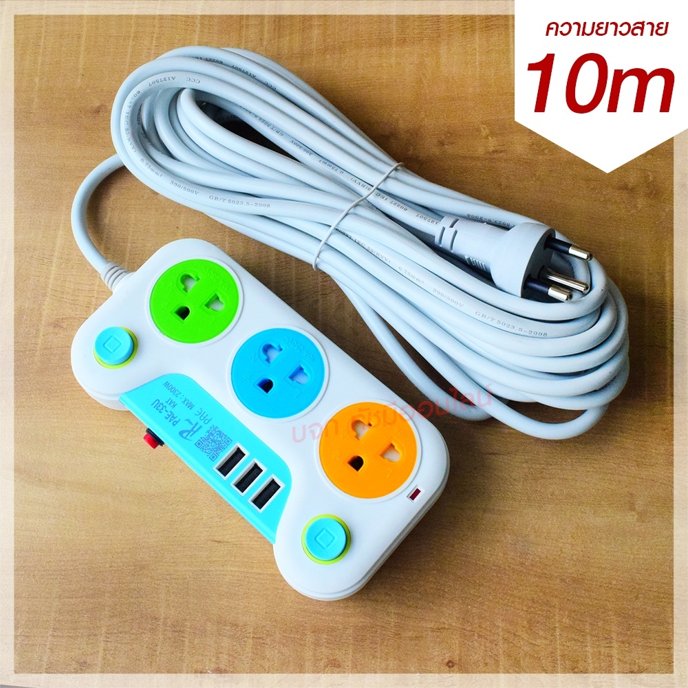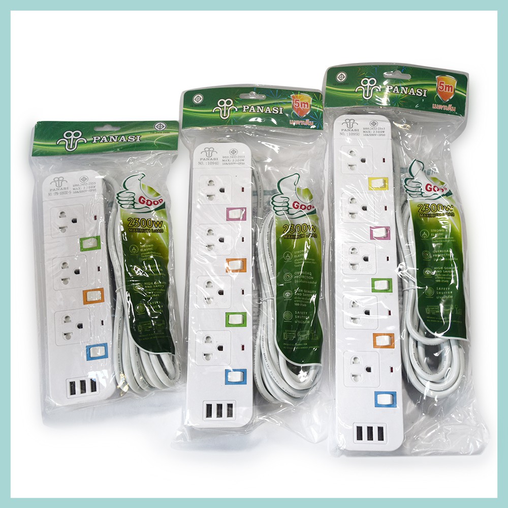 [ลูกค้าใหม่ 1 บาท] PANASI ปลั๊กไฟ มอก.แท้ 2300w ปลั๊ก ปลั๊กพ่วง รางไฟ 5ช่อง, 4ช่อง, 3ช่อง 3USB ความยาว3เมตร,5เมตร,8เมตร