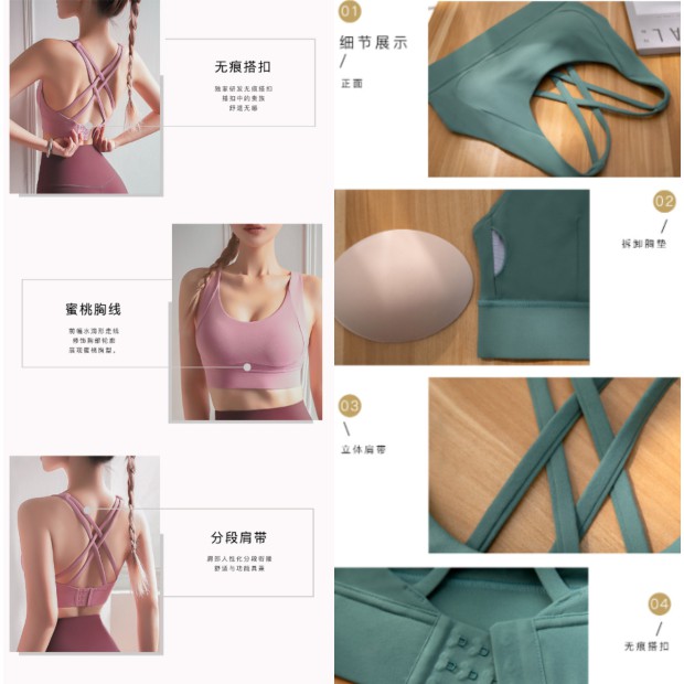 YOGA-619 (WX1245) เสื้อบราโยคะเว้าหลัง♥ สปอร์ตบราฟิตเนส ออกกำลังกาย Sport Bra Lulu ♥มีตะขอปรับได้ 3 ขนาด ♥