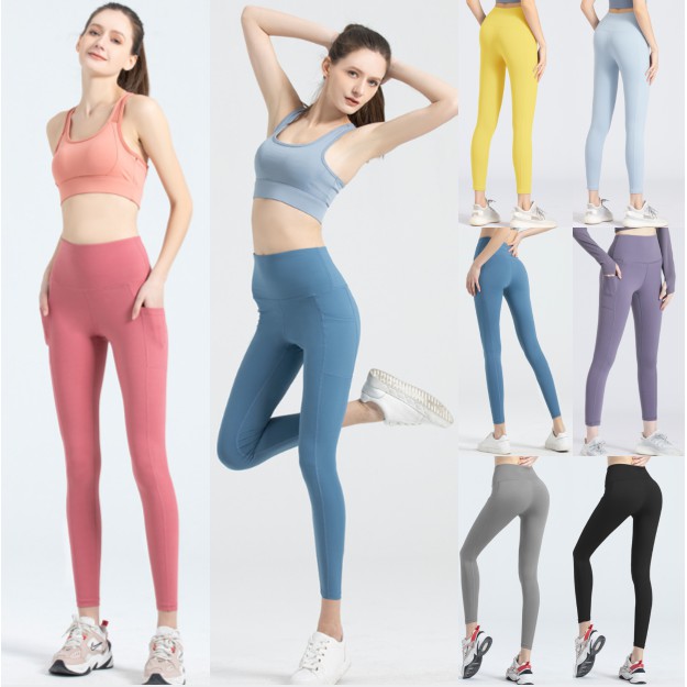 EVE-YOGA-021 LULU กางเกงโยคะขายาวเอวสูง เนื้อผ้านิ่มลื่น ใส่สบายกระชับไม่อึดอัด สไตล์ยุโรป กางเกงเลกกิ้ง มีกระเป๋าข้าง
