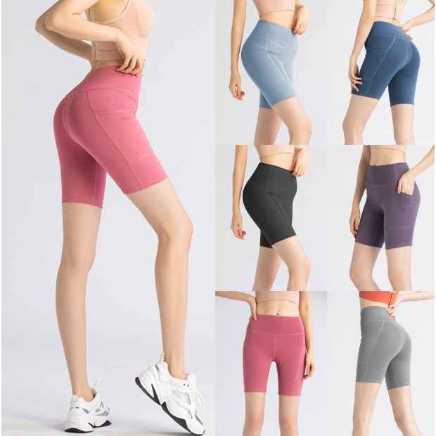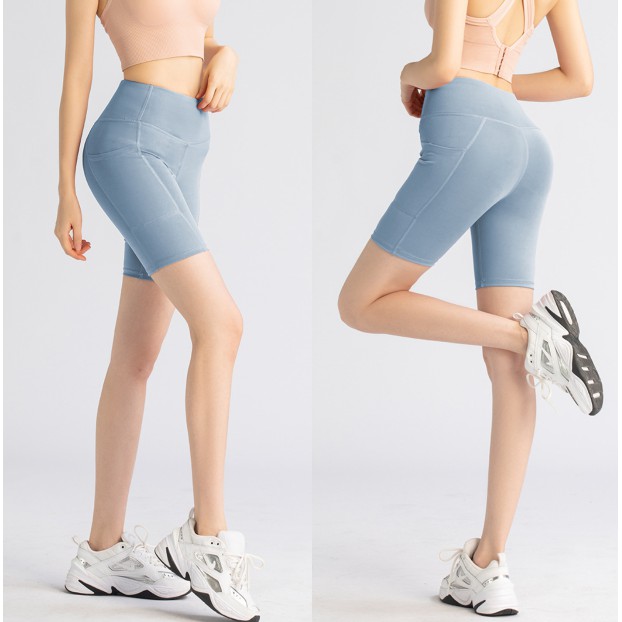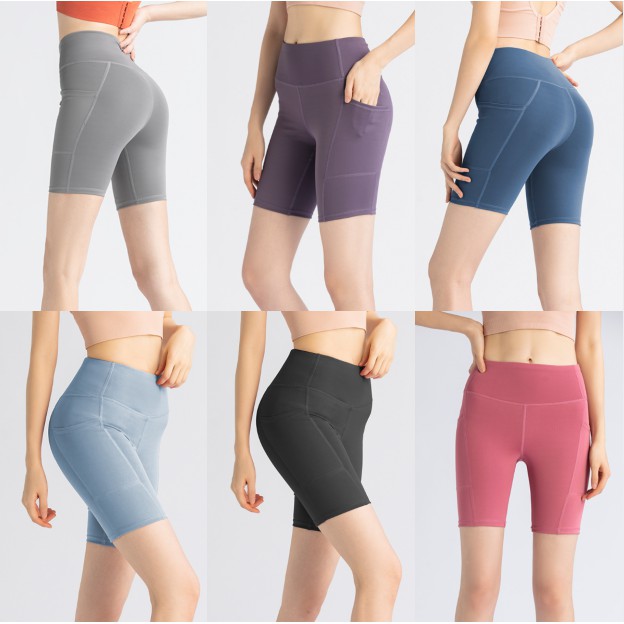 EVE-YOGA-023(มีกระเป๋าข้าง) กางเกงออกำลังกายขาสั้น ผ้านิ่มลื่น ใส่สบายไม่อึดอัด กางเกงโยคะ กางเกงฟิตเนส