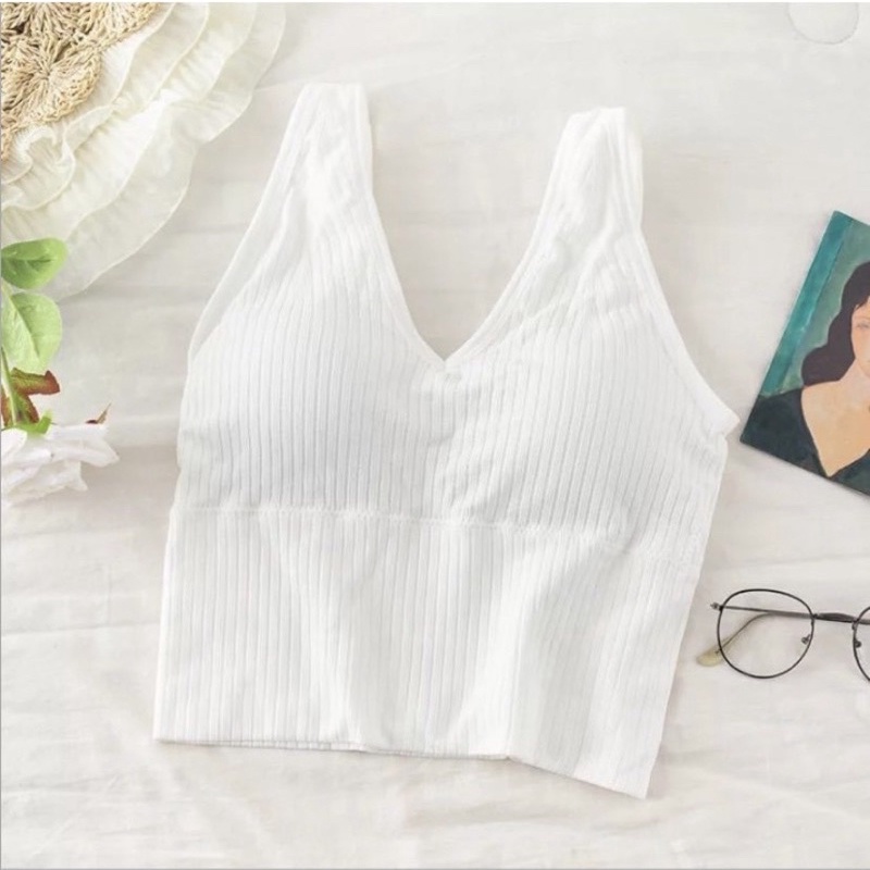 (ค่าส่งเริ่มต้น 18 บาท) สปอร์ตบราสายเดี่ยว2in1 ผ้าร่อง สีพื้น พร้อมส่ง (ค่าส่งเริ่มต้น 18 บาท)