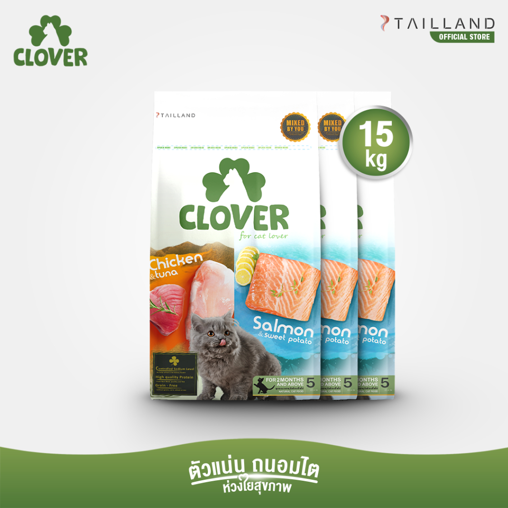 Clover (15 kg) อาหารแมว holistic grain-free ตัวแน่น ถนอมไต (โซเดียมต่ำ) ตัวไม่แน่นคืนเงิน