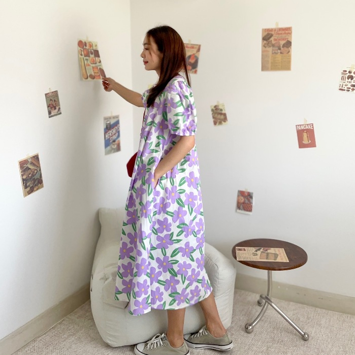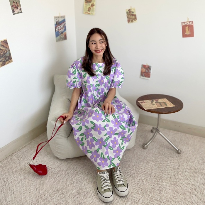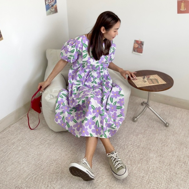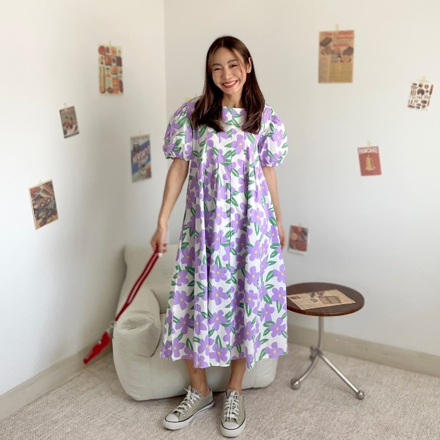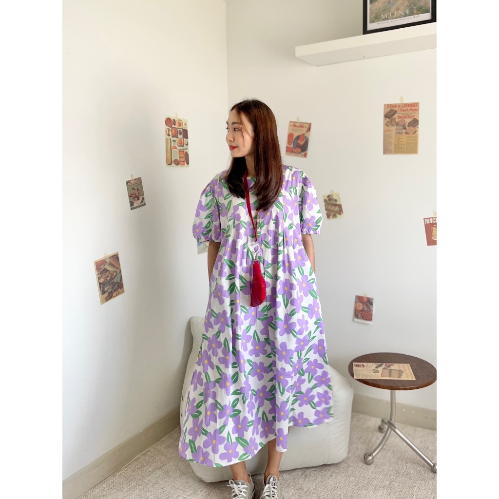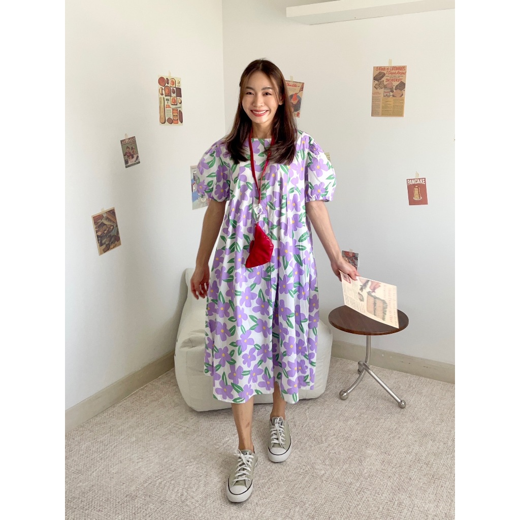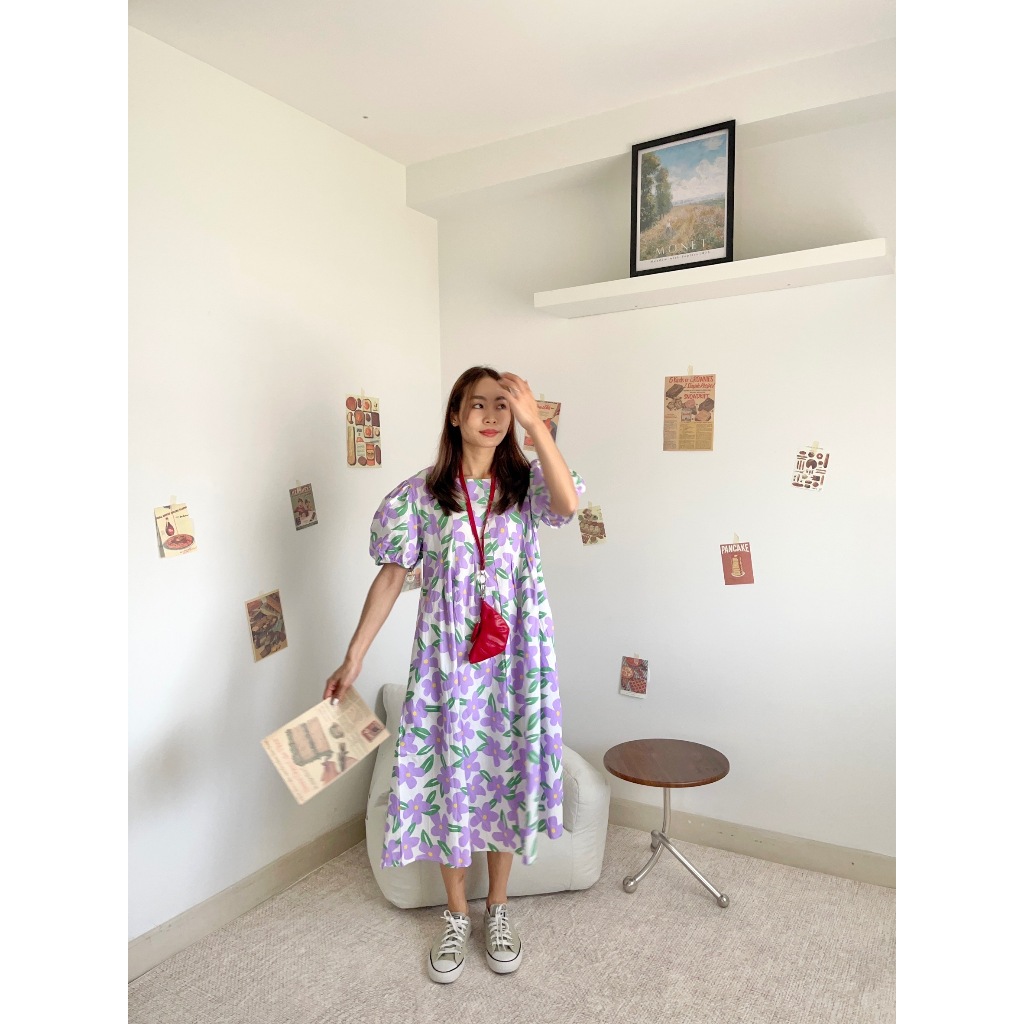 CHAWY 💗 Buble flora dress C1083 เดรสยาวแขนตุ๊กตา เดรสยาวแขนตุ๊กตาลายดอก