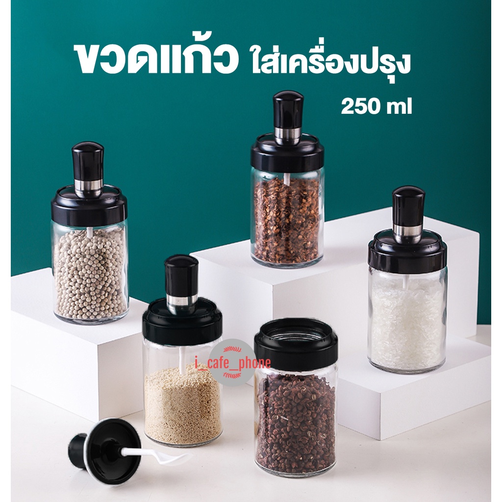 ขวดใส่เครื่องปรุงอาหาร 250ml พร้อมช้อน ที่ใส่เครื่องปรุง ขวดใส่เครื่องเทศ วัสดุแก้วพร้อมฝาปิด