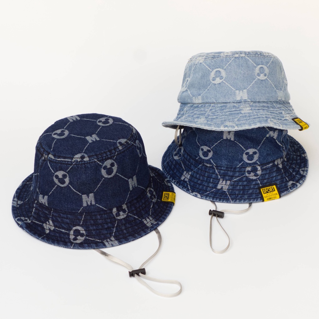 [พร้อมส่ง] หมวกเด็ก 10 เดือน-5ปี รอบหัว:50-52 cm. หมวกบักเก็ต (Bucket) ผ้ายีนส์ ลายหนู 🐭 หมวกแฟชั่นเด็ก
