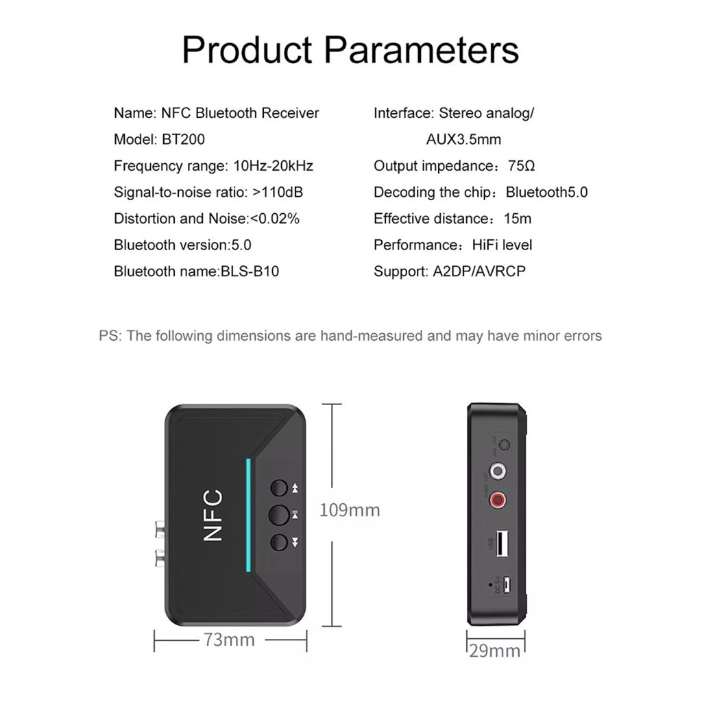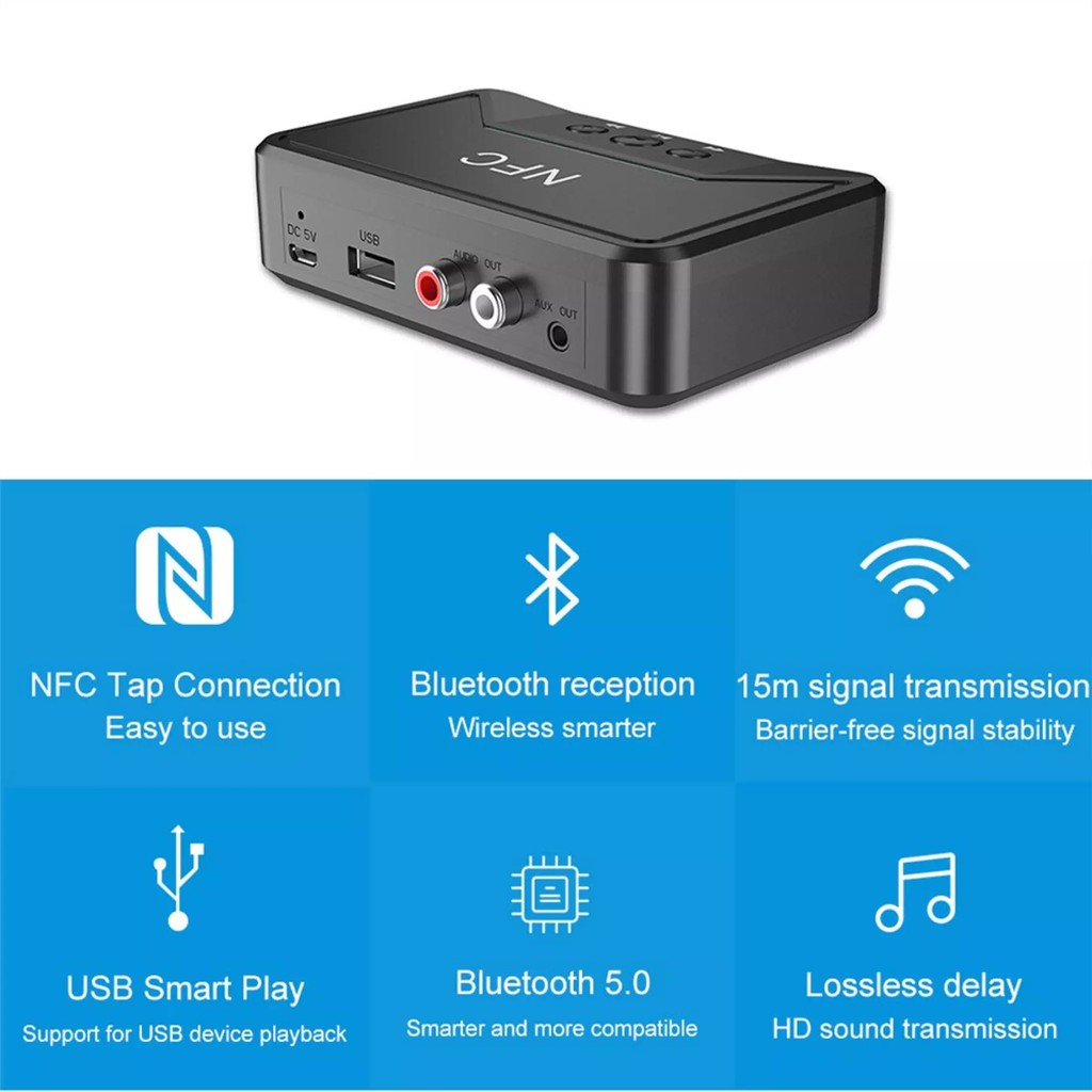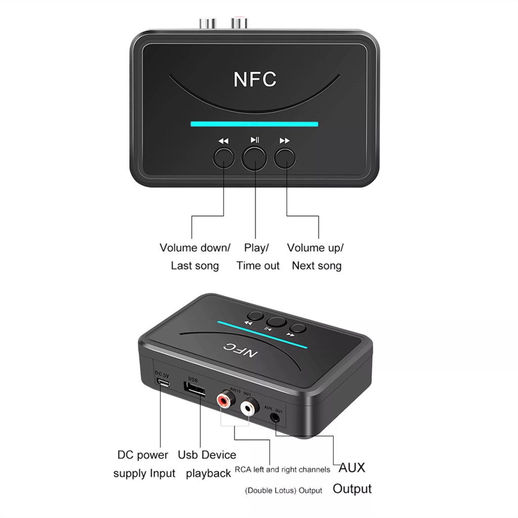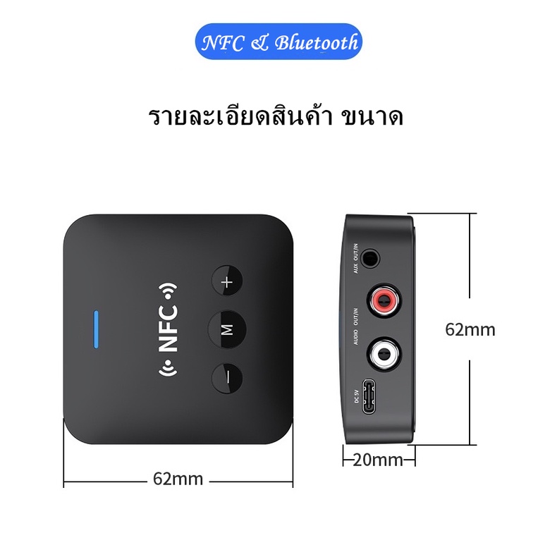 NFC กล่องอะแดปเตอร์ NFC รับเสียงสเตอริโอ ชนิดบลูทูธ ไร้สาย 3.5 มิลลิเมตร AUX RCA เล่นเพลง เสียง ลำโพงในรถยนต์