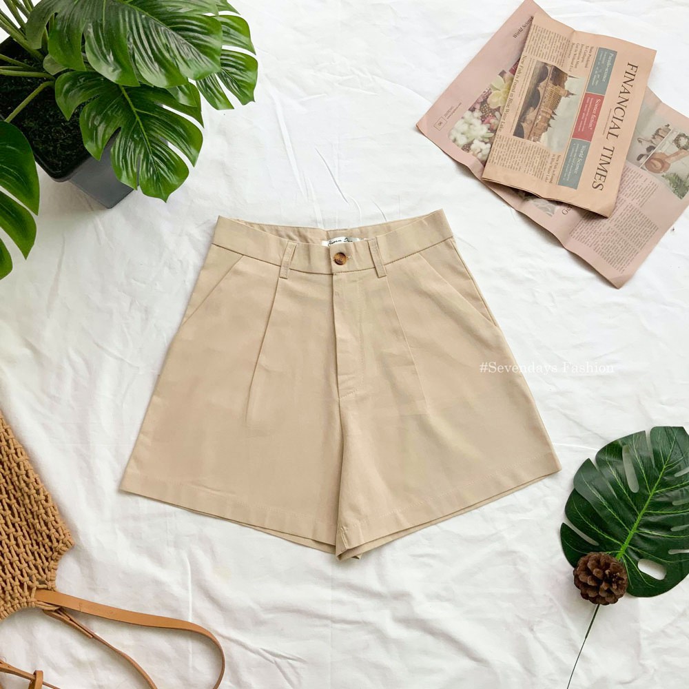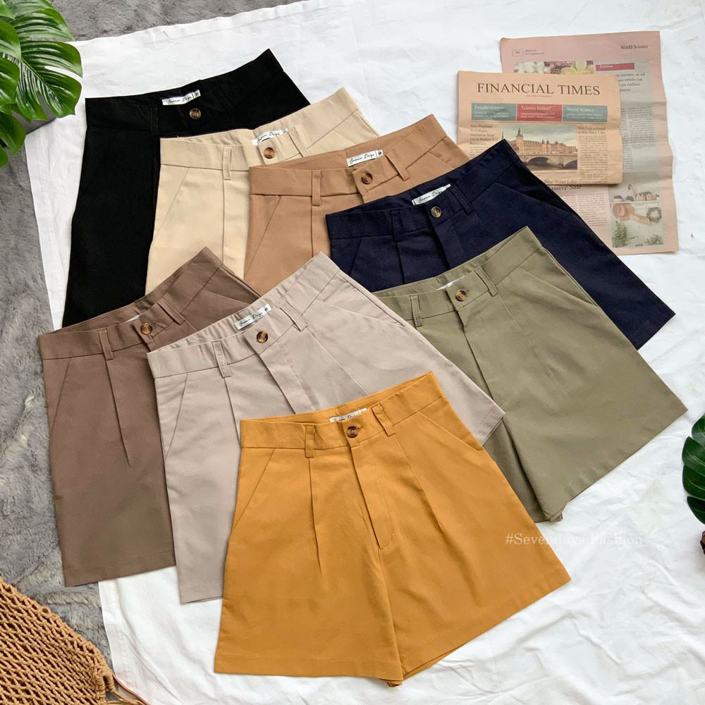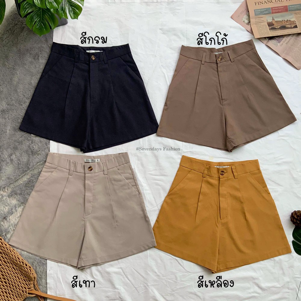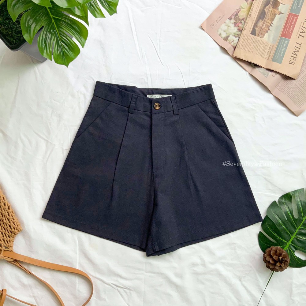 🔥HOT SALE🔥 #006 กางเกงขาสั้น กางเกงเอวสูง กางเกงขาสั้นผ้าลินินเอวสูงเหนือสะดือผ้าไม่ยืด ไม่สม๊อค‼️ รุ่นกระดุมหน้า