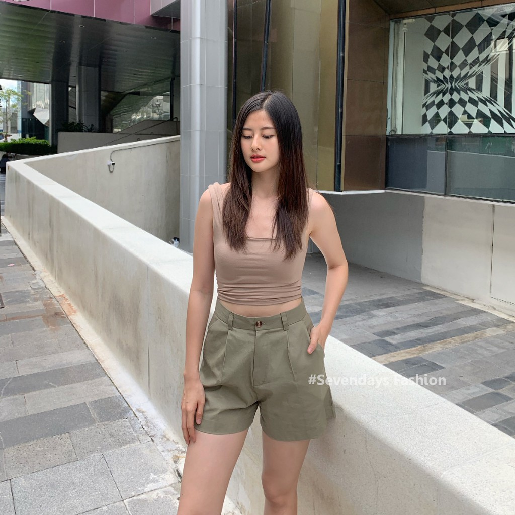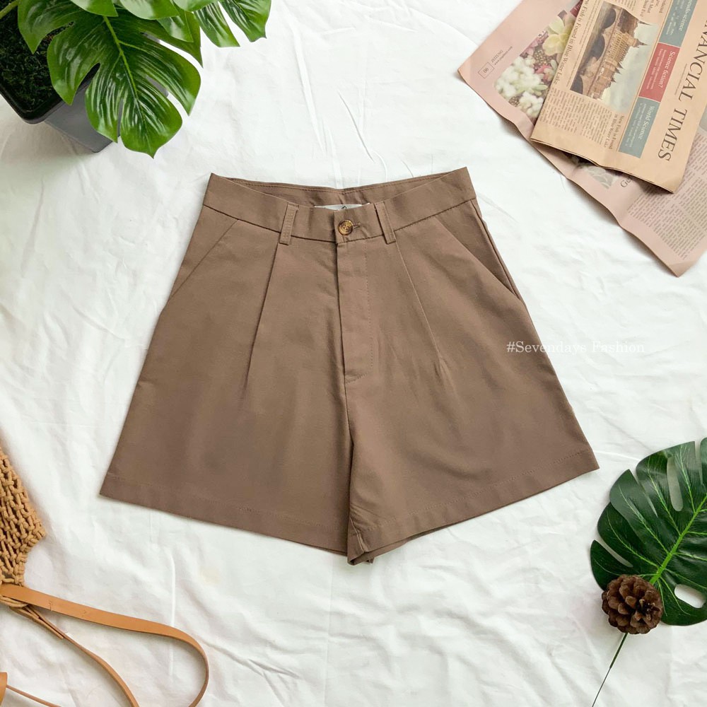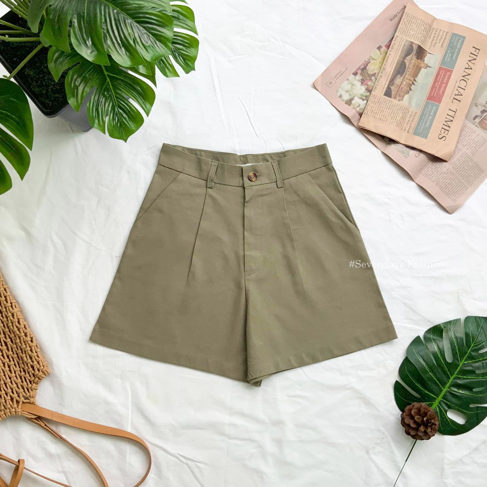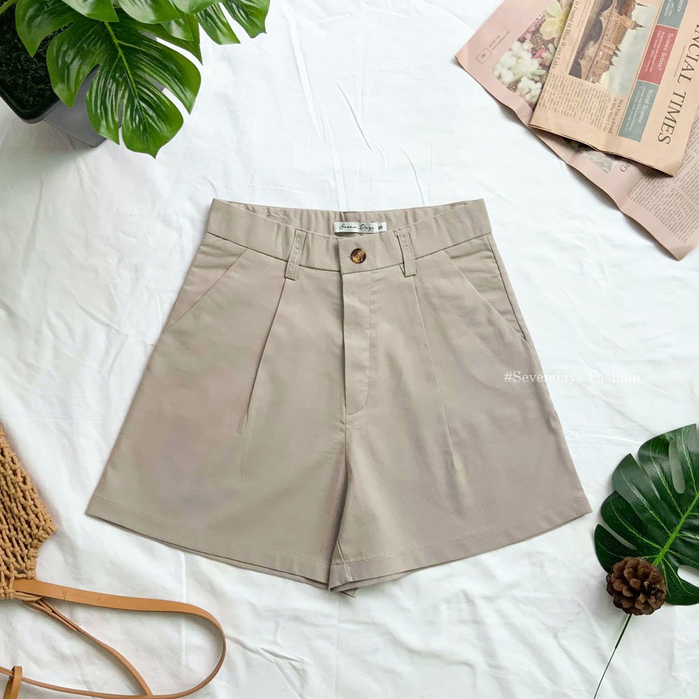 🔥HOT SALE🔥 #006 กางเกงขาสั้น กางเกงเอวสูง กางเกงขาสั้นผ้าลินินเอวสูงเหนือสะดือผ้าไม่ยืด ไม่สม๊อค‼️ รุ่นกระดุมหน้า