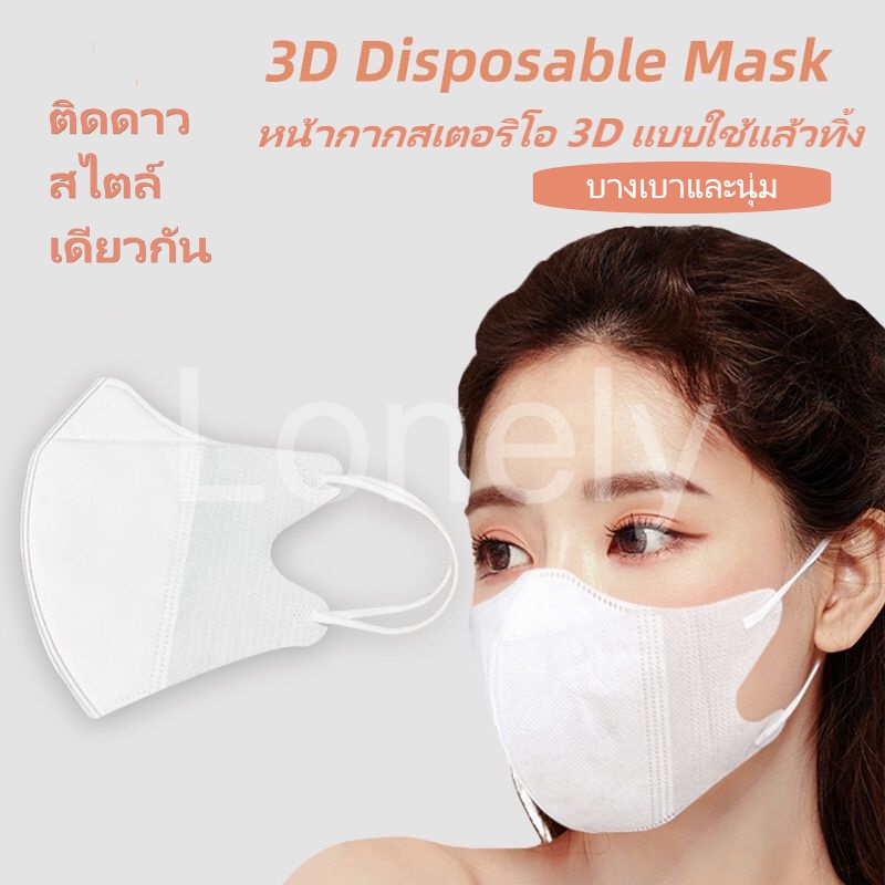 หน้ากาก 3D (เเพ็คละ10ชิ้น) แบบใช้แล้วทิ้ง 3 ชั้น แมสหน้าเรียว ยืดหยุ่น ไม่เจ็บหู สีขาวและดำ