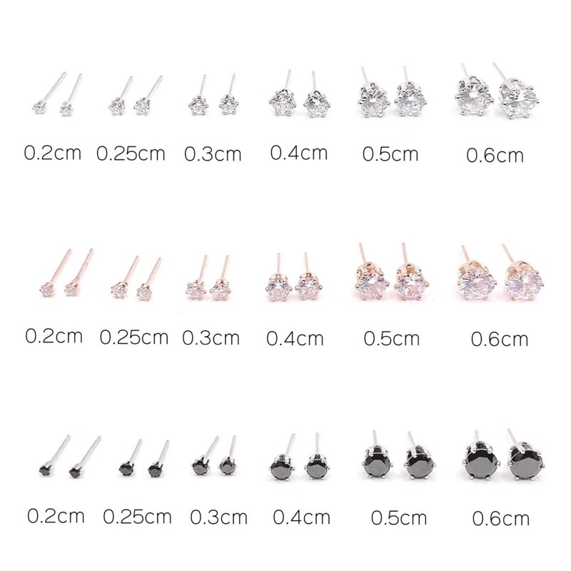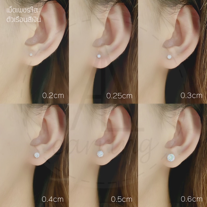 [ราคาต่อ1คู่] ต่างหูเพชรเม็ดเดี่ยว6ขนาด พร้อมแป้น(ทับหลัง)แบบโลหะทุกคู่ ไม่ใช่เงินแท้ พร้อมส่งจากไทย