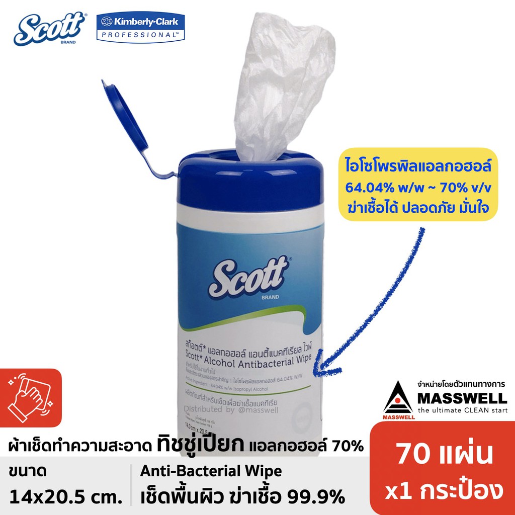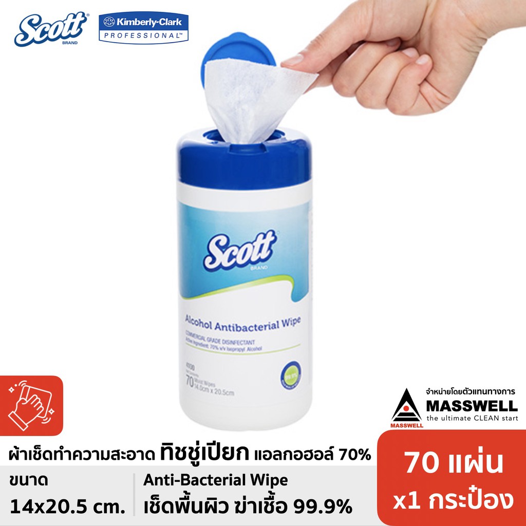SCOTT ทิชชู่เปียก Alcohol Antibacterial Wipe 4100 (70แผ่น x1กระป๋อง) [4100]