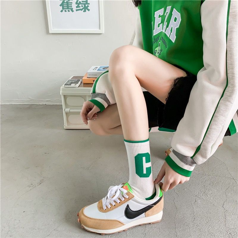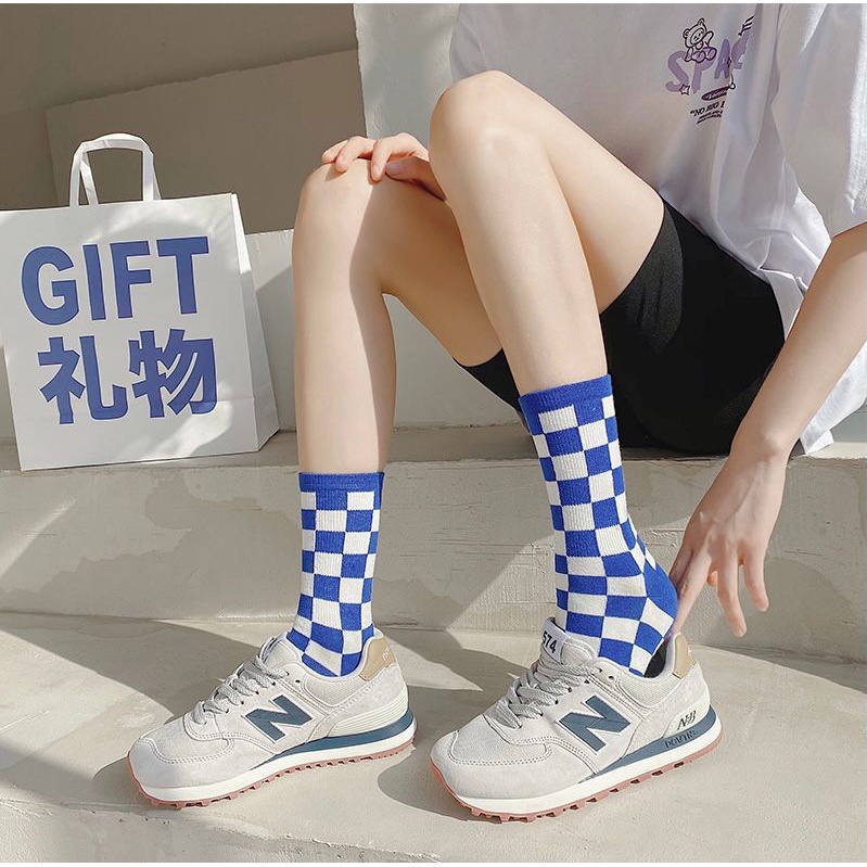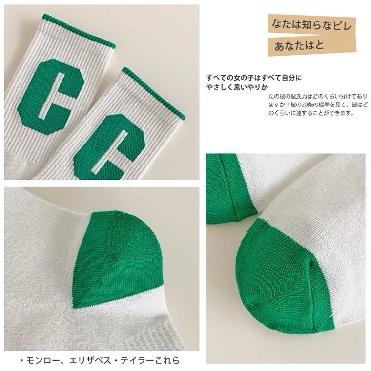 Klein ถุงเท้าผ้าฝ้าย ข้อกลาง ลายตารางหมากรุก สีเขียว แฟชั่นฤดูใบไม้ผลิ และฤดูร้อน สําหรับผู้หญิง