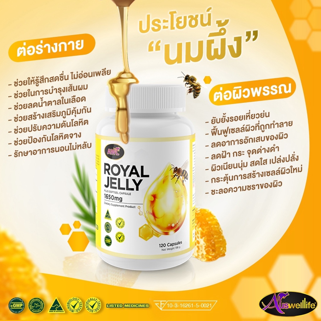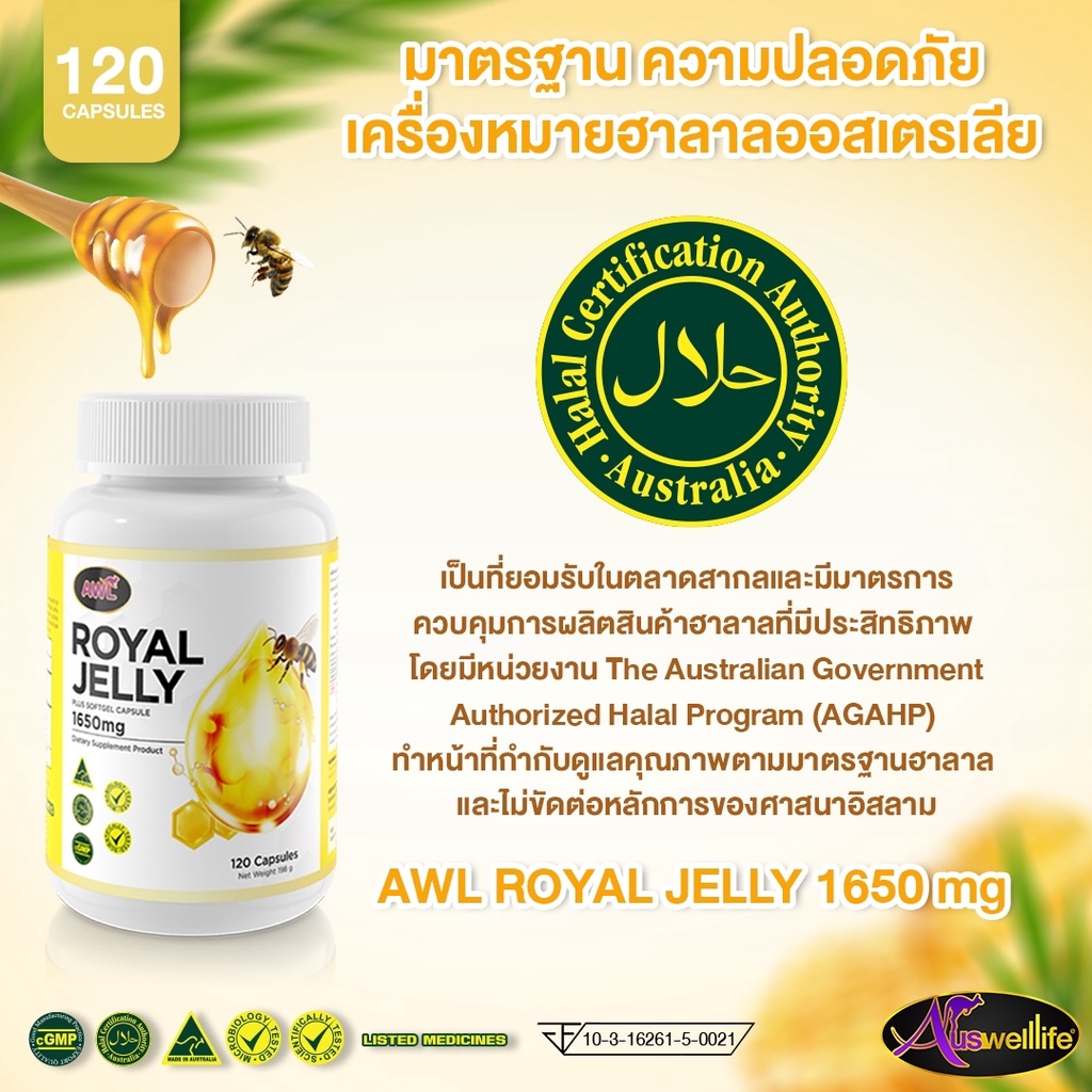 [3 แถม 2] AWL Royal Jelly 1650 mg. นมผึ้ง ขนาด 30 แคปซูล (Auswelllife)