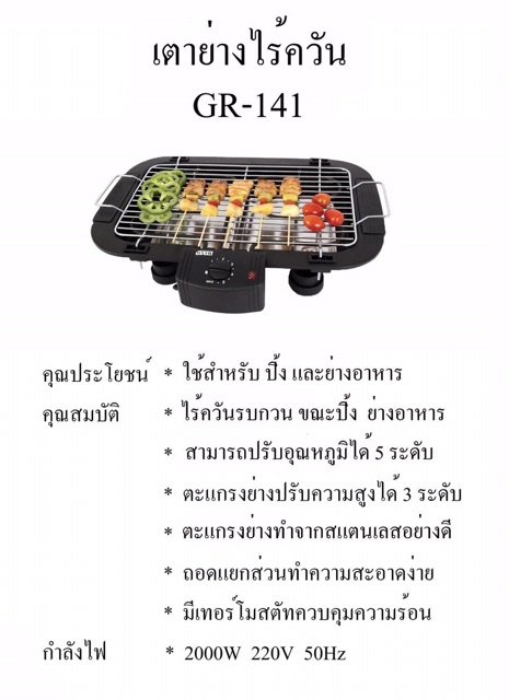 OTTO เตาปิ้งย่างไร้ควัน ไฟฟ้า รุ่น GR-141