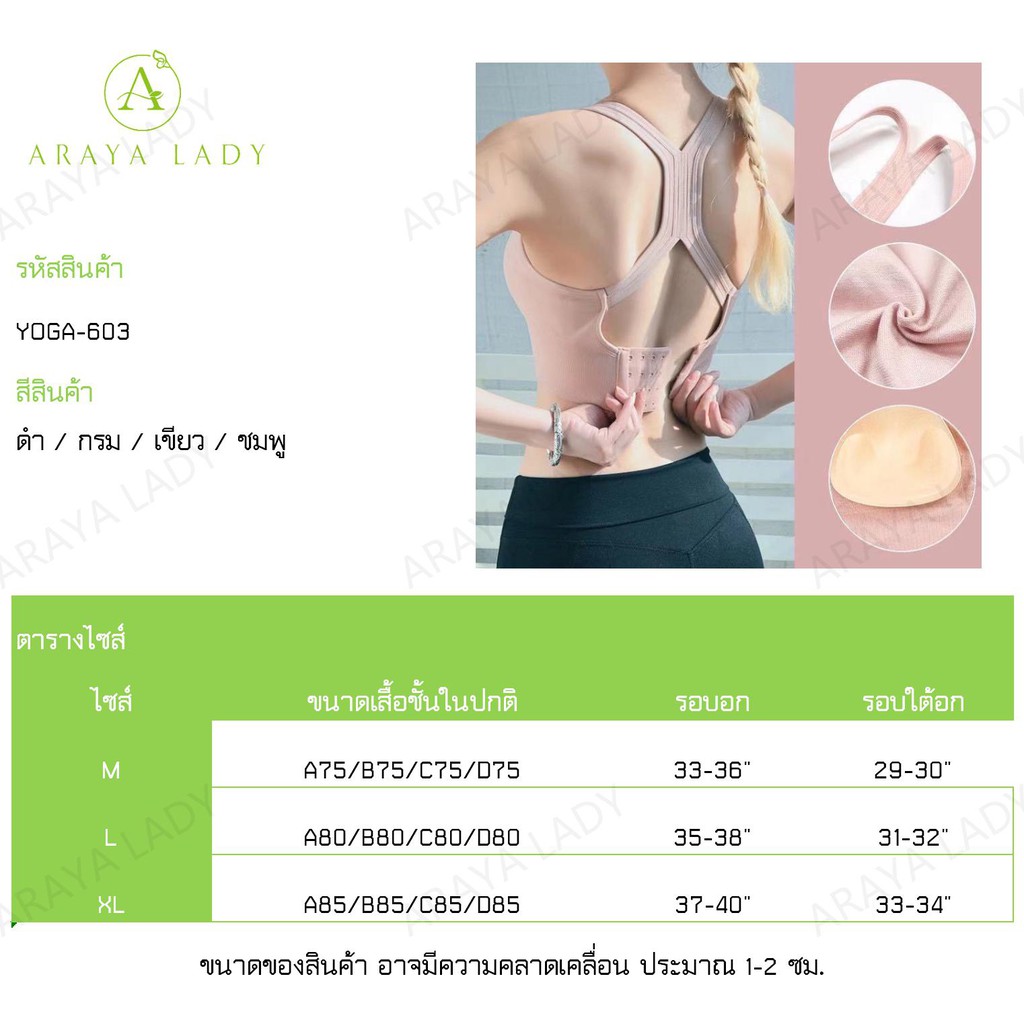 ✅พร้อมส่ง✅(YOGA-603) Sport Bra สปอร์ตบราผ้าทอเนื้อแน่น ทรงสวย กระชับหน้าอก มีฟองน้ำ
