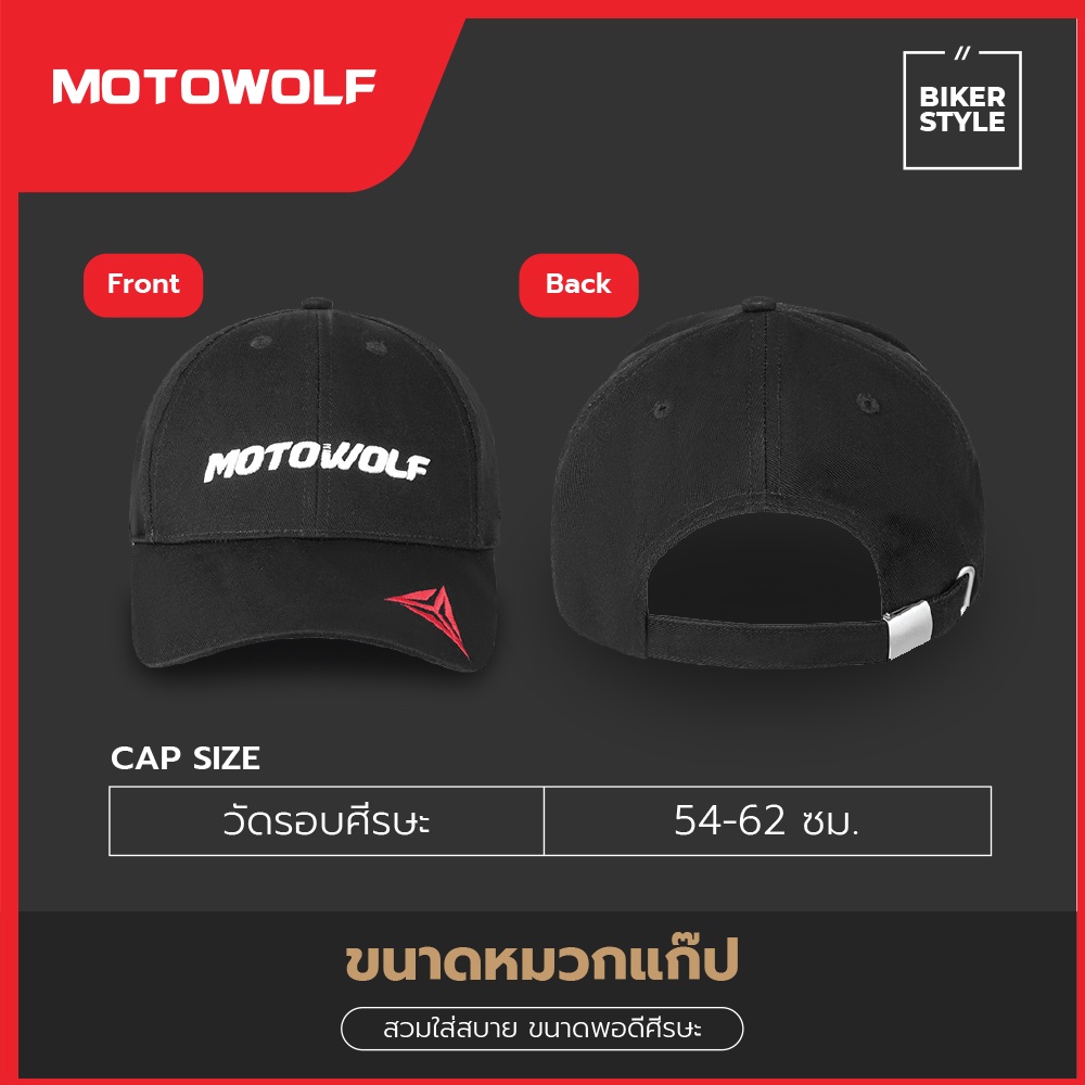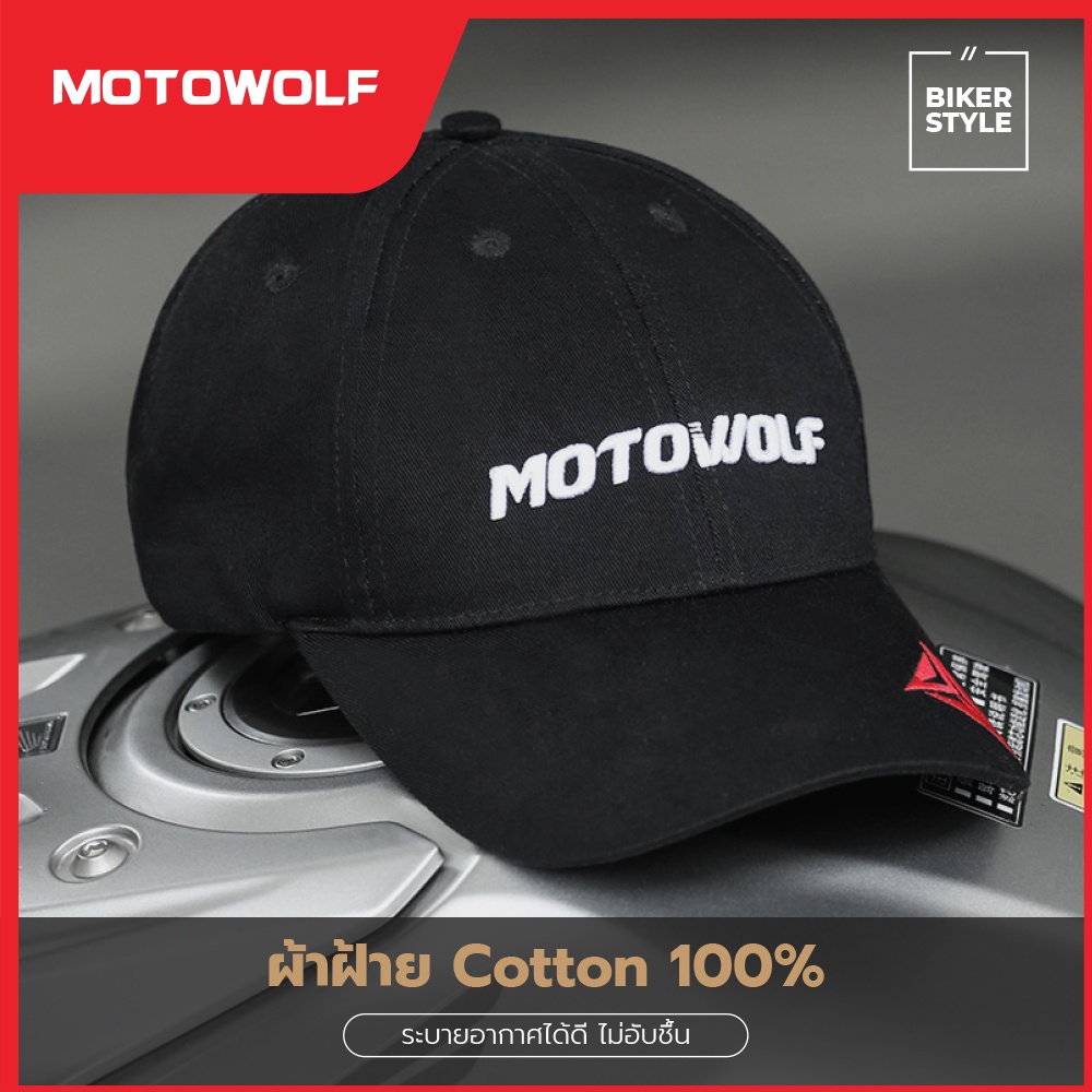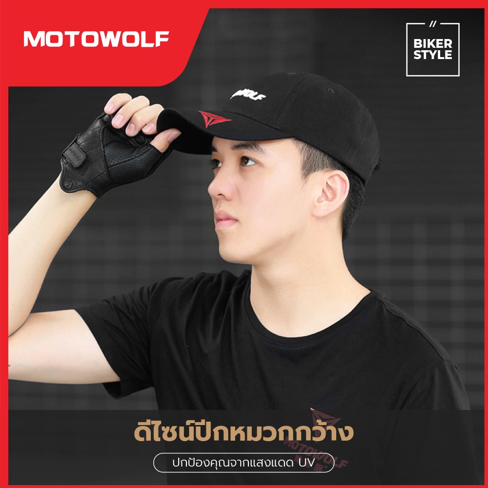 MOTOWOLF หมวกแก็ป รุ่น 1916 หมวกกันแ ดด สีดำ ของแท้