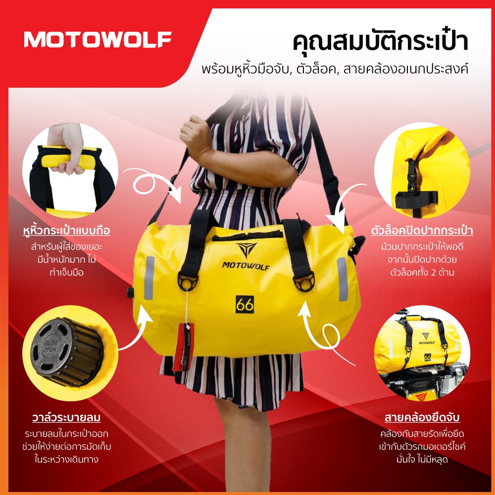 [โค้ดลด MTWDEC100 ลด100] MOTOWOLF (มีดันทรง)กระเป๋ากันน้ำ0701 กันเป๋าเดินทาง พร้อมแผ่นรองดันทรง