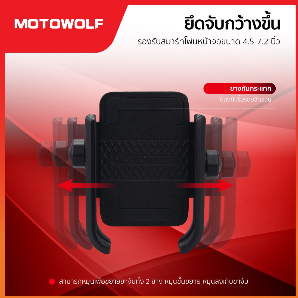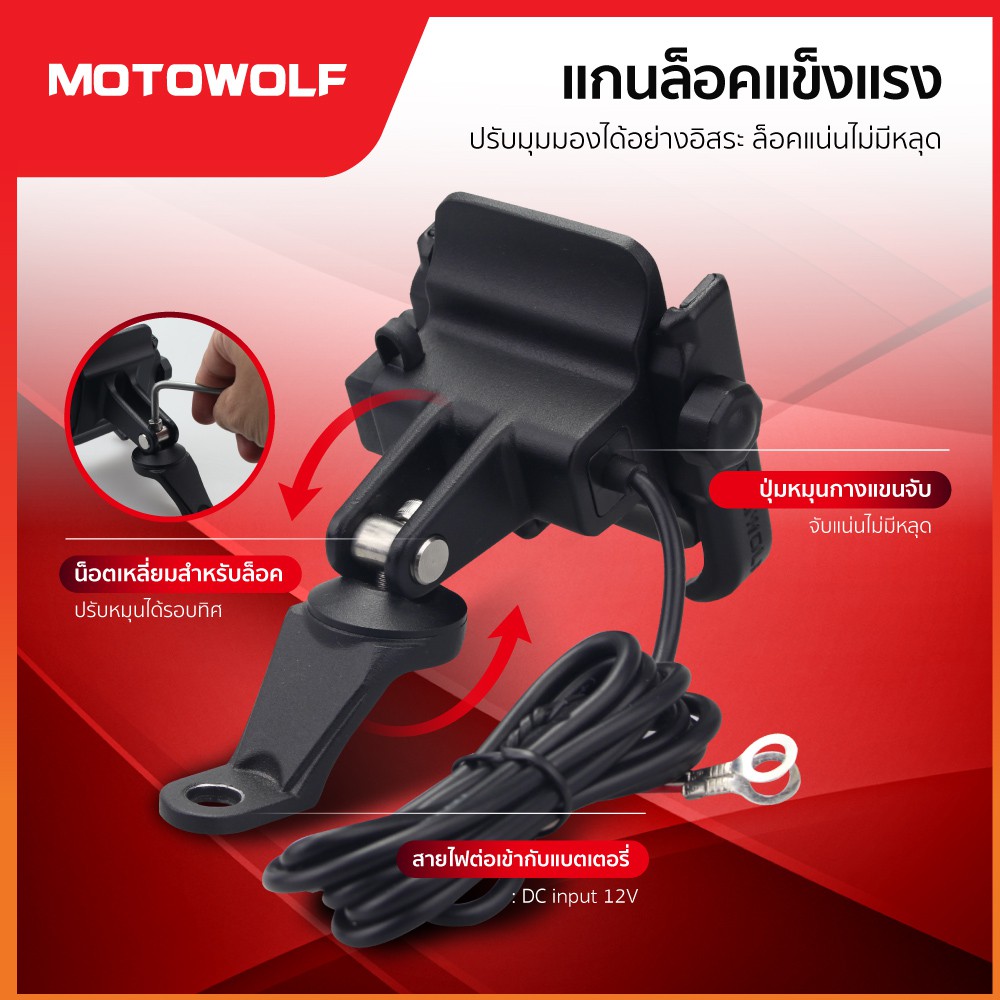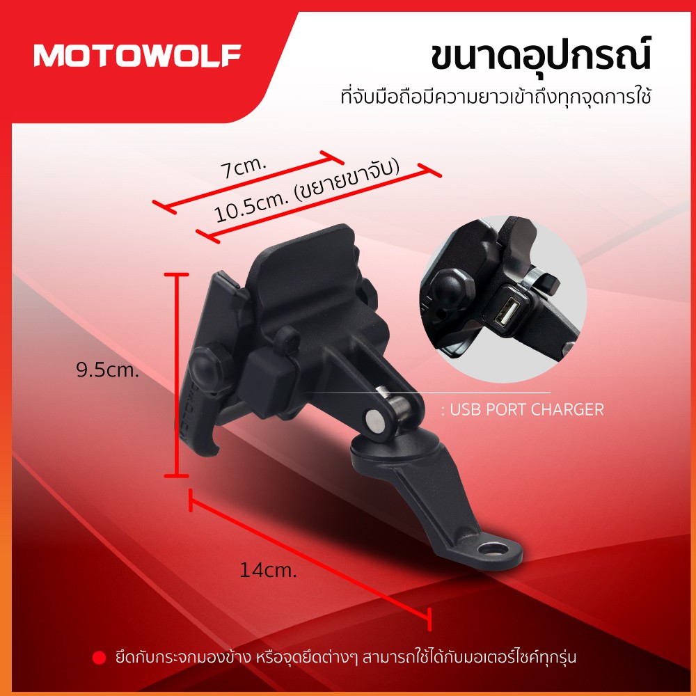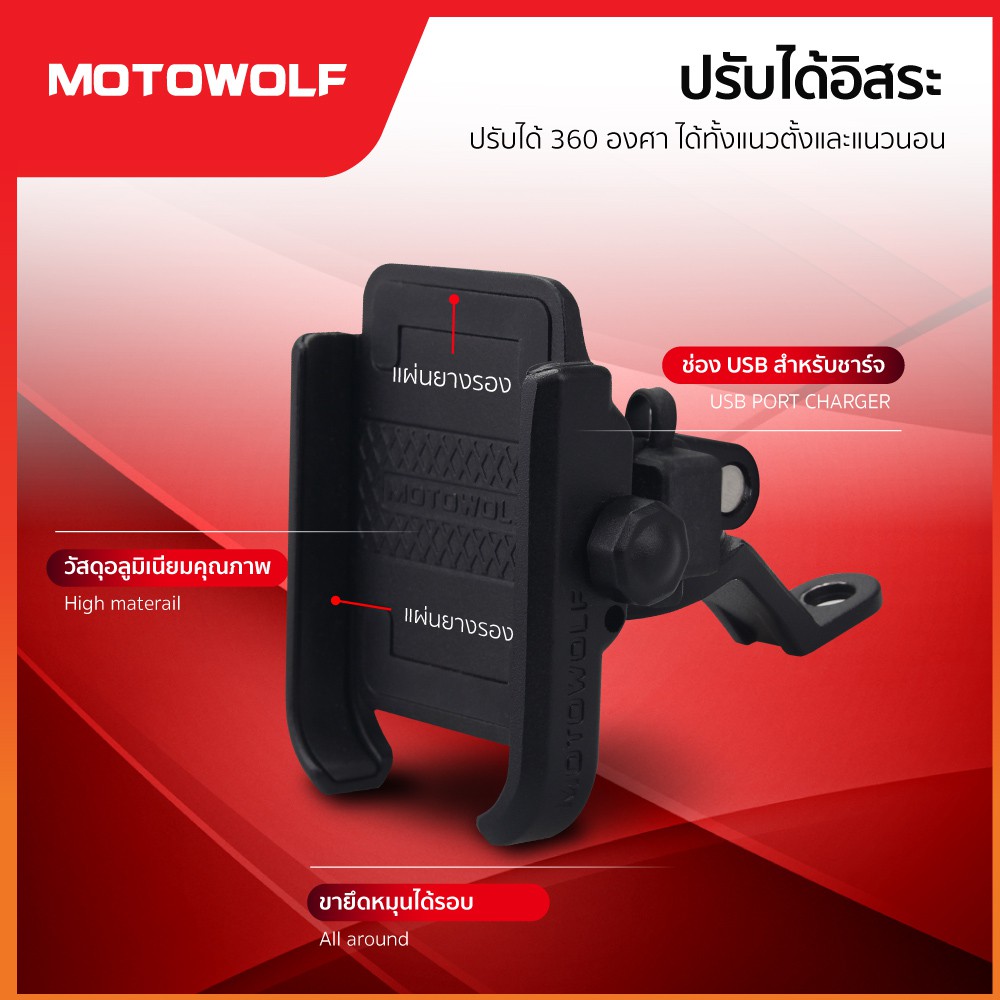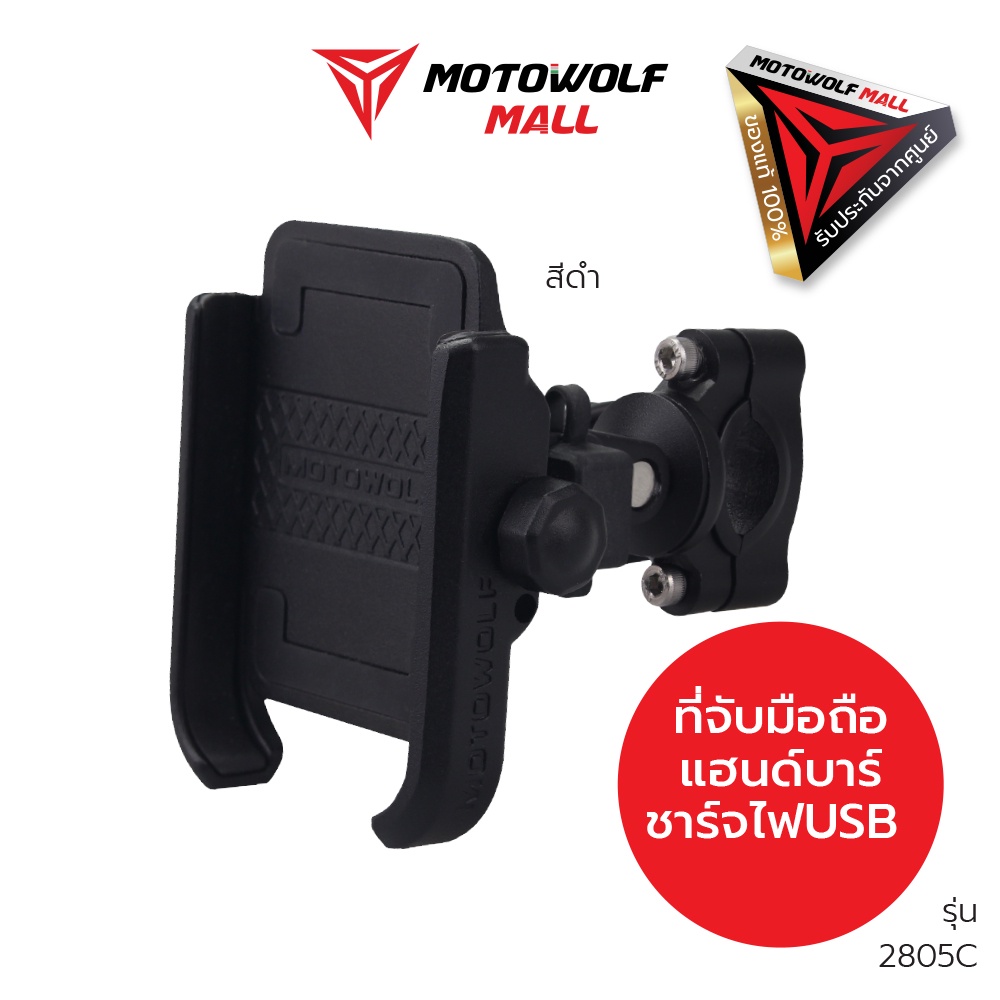 [โค้ดลด MTWDEC100 ลด100] MOTOWOLF รุ่น2805USB ที่จับที่วางมือถือมอเตอร์ไซค์ที่จับมือถืออลูมิเนียม