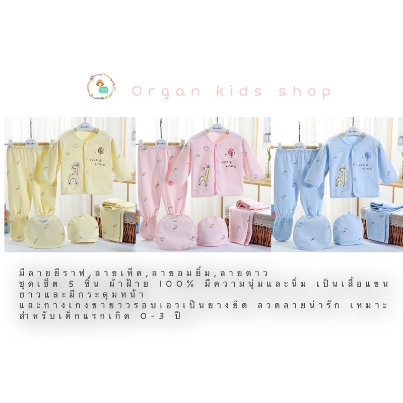 รหัส 5S ชุดเตรียมคลอดเซ็ต 5 ชิ้น เสื้อผ้าเด็กอ่อน ผ้าฝ้ายงานตัดเย็บดี 🚚พร้อมส่งในไทย