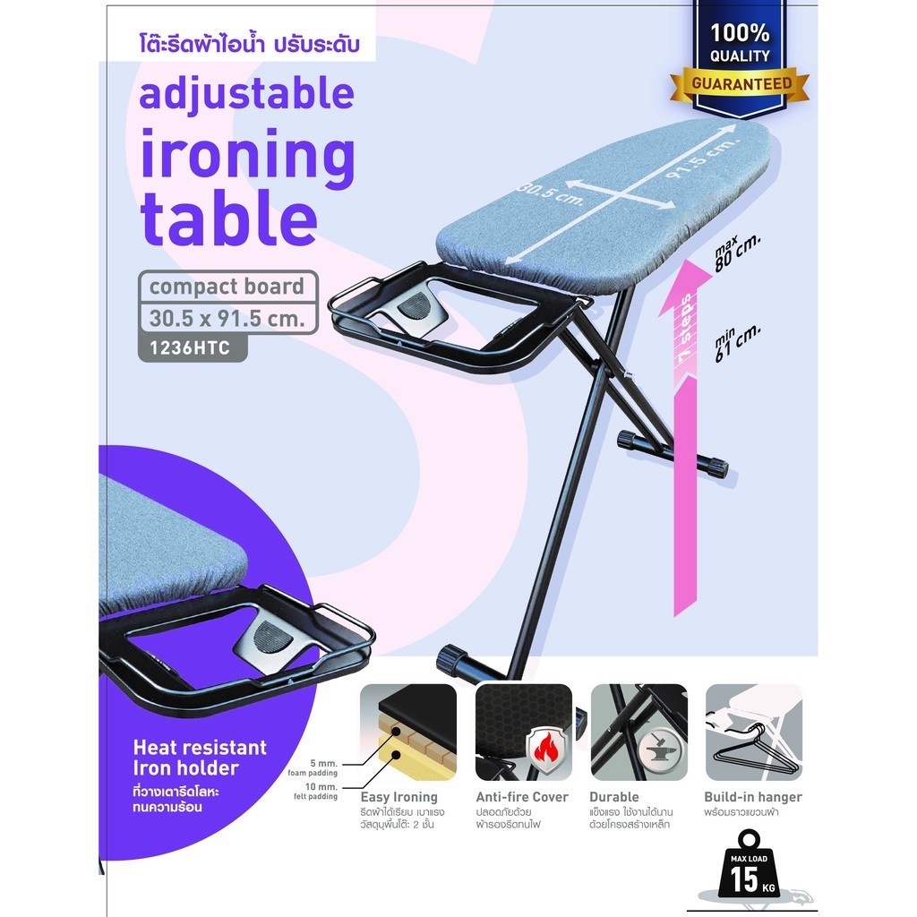โต๊ะรีดผ้าไอน้ำ แบบยืน ปรับความสูงได้ 7 ระดับ #1236HTC