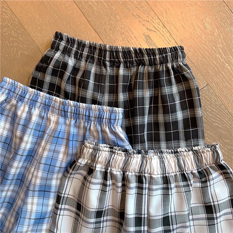 กางเกงลายสก็อต เอวยาง ทรงกระบอก ใส่สบายพร้อมส่ง #355