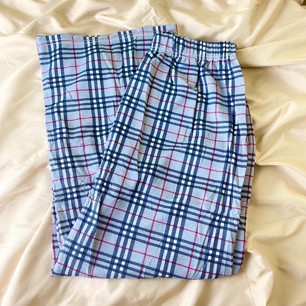 กางเกงลายสก็อต เอวยาง ทรงก ระบอก ใส่สบายพร้อมส่ง #355