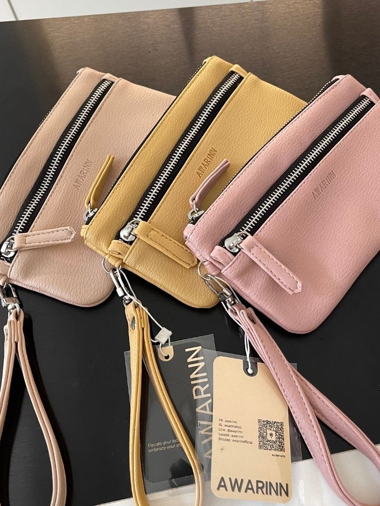 AWARIN Purse-1 กระเป๋าสตางค์ ขนาดกลาง2ช่องซิป พร้อมสายคล้องมือ ใส่มือถือได้ 6สีพร้อมส่ง